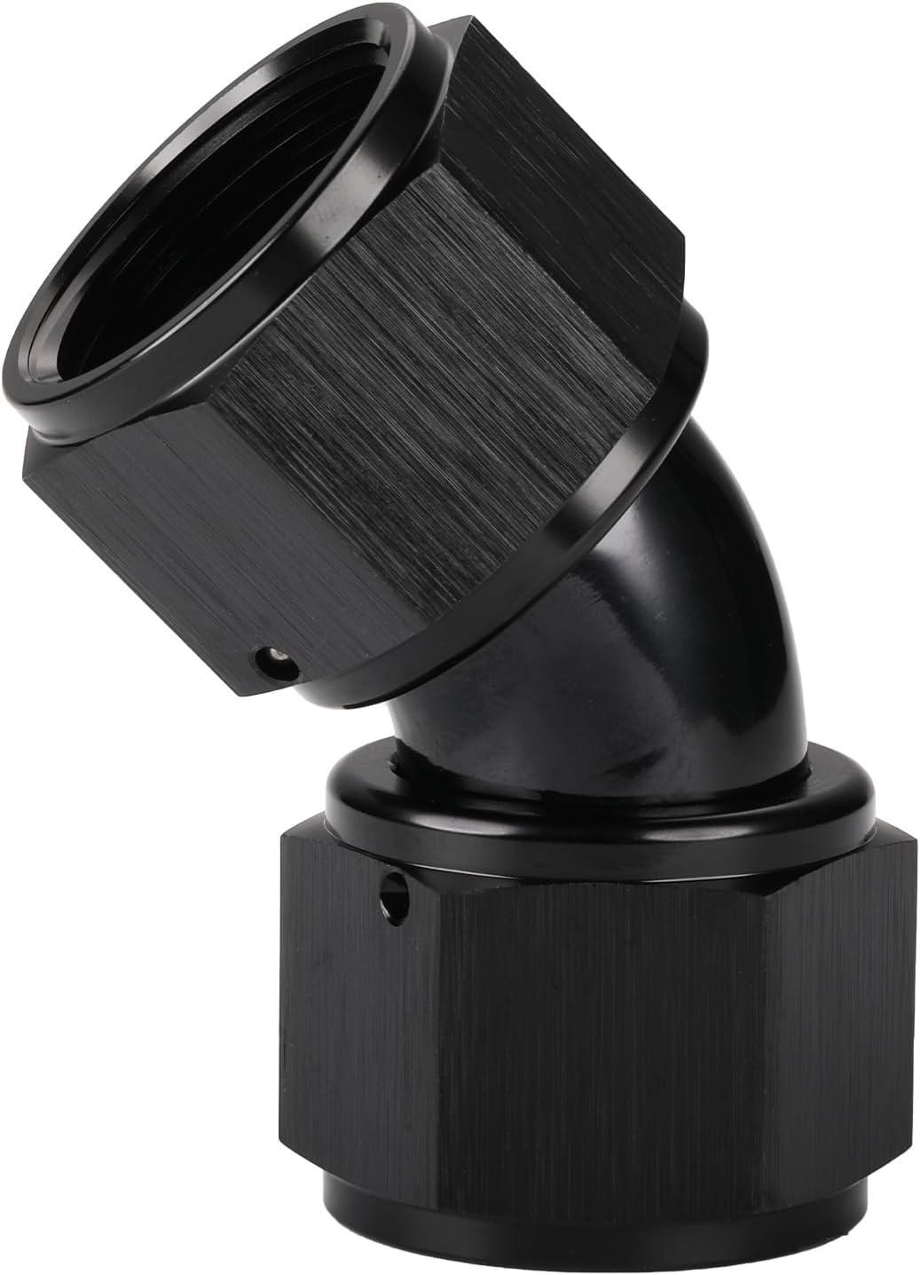 Specifications: Material: 6061 T6 Aluminum Size: -16AN (1-5/16x12UNF) female to female swivel coupling, 90 degree Color: anodized black Features: - 37° sealing angle guarantees a positive seal at maximum operating pressures Full swivel head allows for easy angle adjustment - The forged one-piece full flow construction has a superior wall thickness and provides an uninterrupted flow - Fully compatible with all oil, fuel, coolant, e85, race fuel, and power steering fluid Notice: Professional installation is highly recommended! (No instructions included)