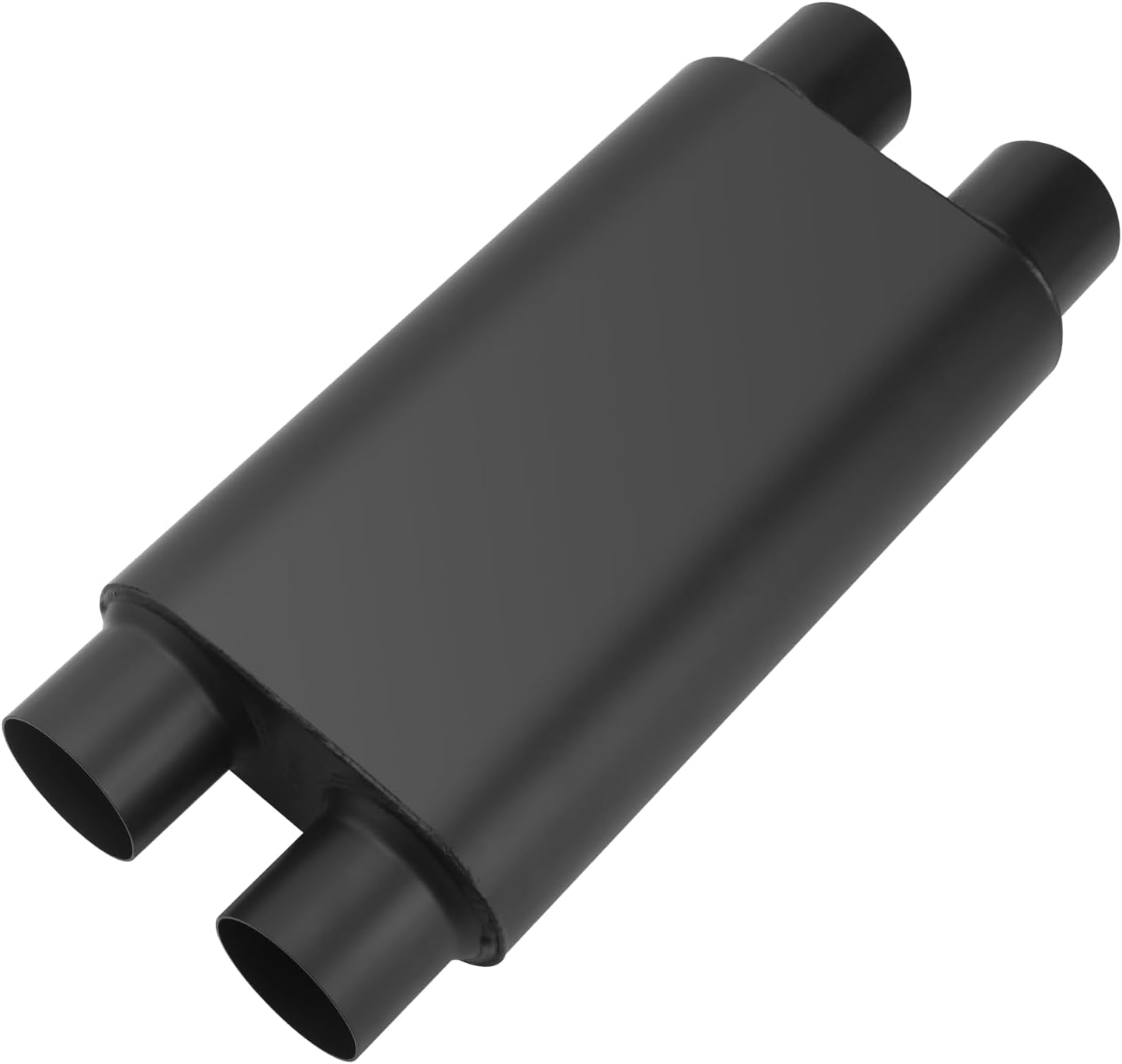 Piclafe Universal Mufflers Single Chamber 2" Inlet 2" Outlet 13" Overall Length, Aluminized Steel Performance Muffler for Cars, Trucks (Black)