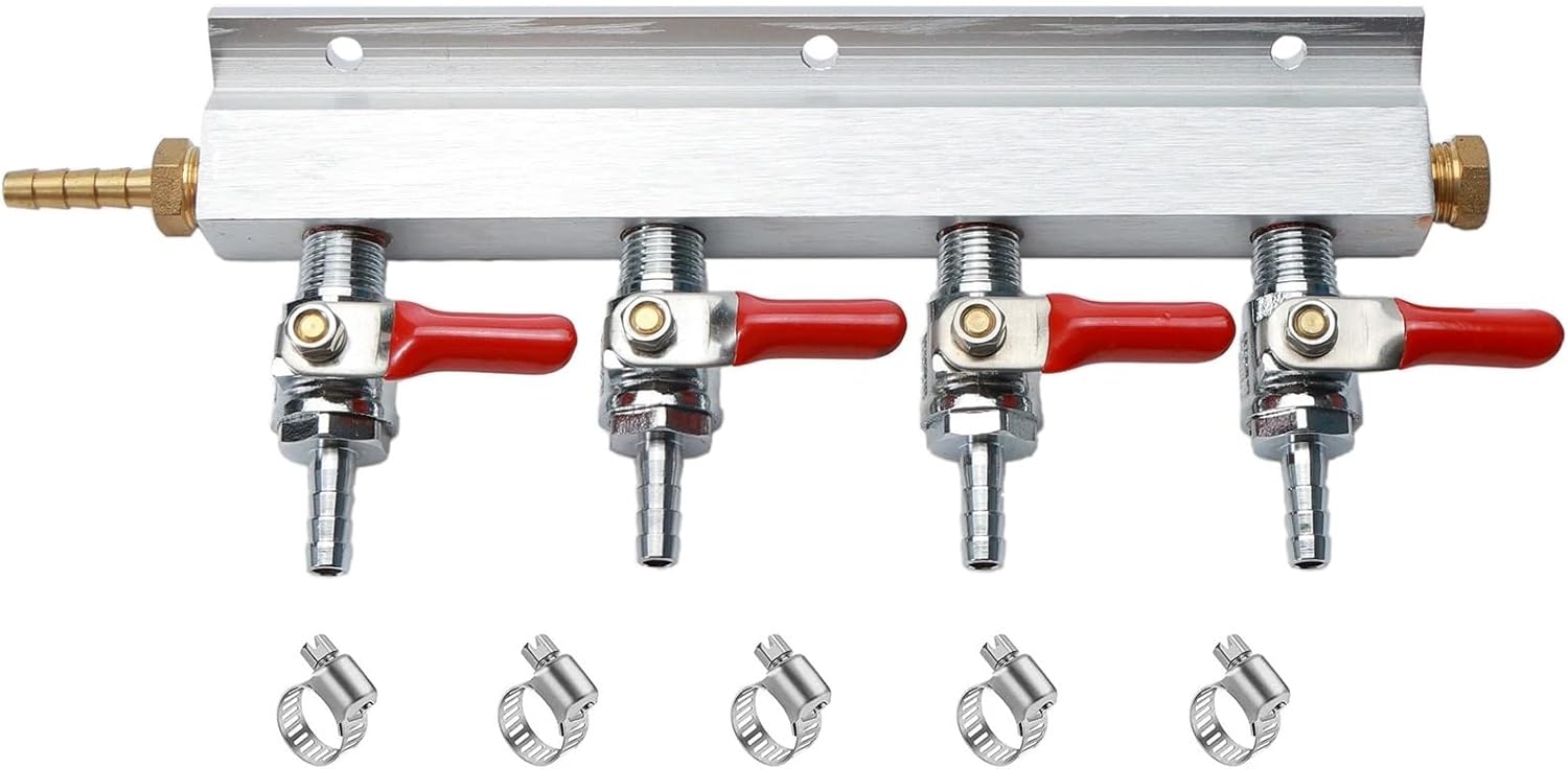 Proportioning ValvesGas Manifold Beer Gas Distributor Homebrew Air Distributor CO2 Manifold Splitter 1/4" Barb Fittings Ball Valve with Check Valve
