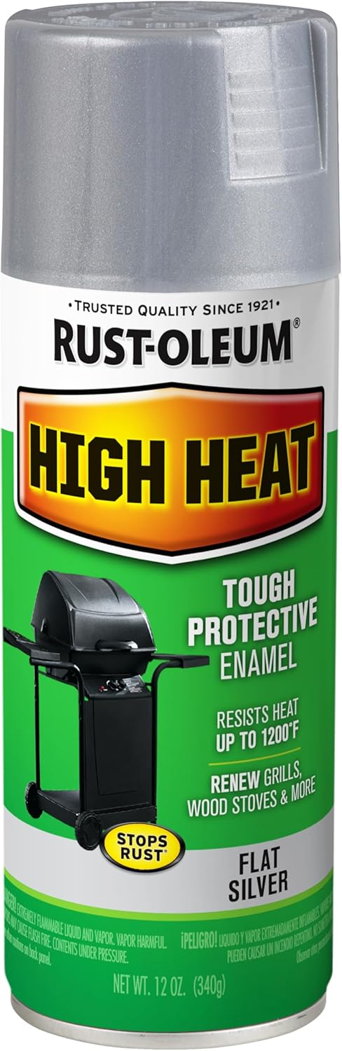 Product Description Rust-Oleum High Heat Spray Paint makes your barbecue grill look like new. Specially formulated to resist heat up to 1000º F. Resists outdoor weathering and provides rust protection. Apply to grills, wood-burning stoves, radiators, engines or other metal items. From the Manufacturer Rust-Oleum 7778830 High Heat Heat Resistant BBQ Finish Spray Paint, Black Rust-Oleum Specialty High Heat Spray retains color and finish up to 1200º F. Apply to grills, wood-burning stoves, radiators, engines or other metal items. Provides rust protection. Rust-Oleum 7778830 High Heat Heat Resistant BBQ Finish Spray Paint, Black Features: Make your barbecue grill look like new Specially formulated to resist heat up to 1000º F Resists outdoor weathering rosol Black.