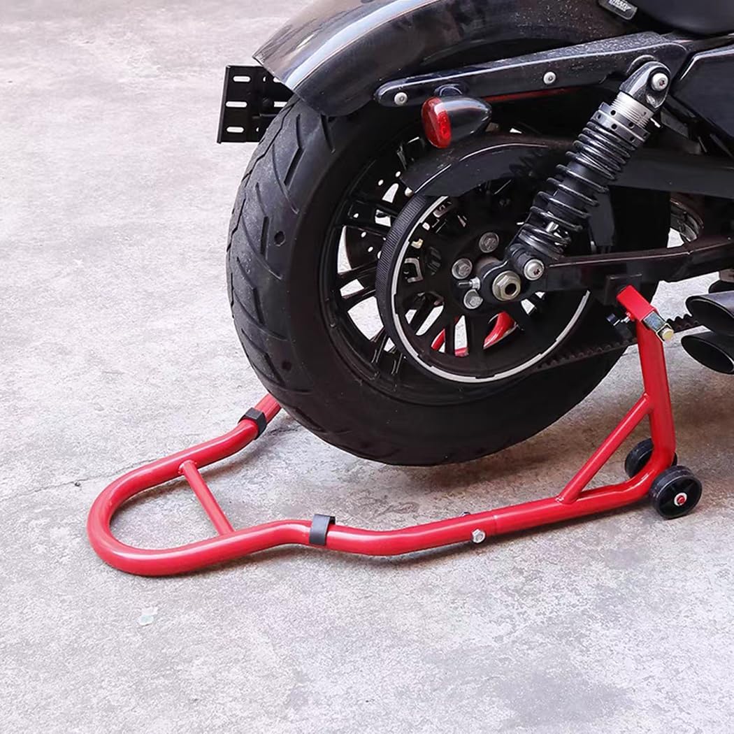 Color: Red Material: High grade powder coated steel Max. Capacity: 500kg Adjustable Universal Fork Heads: U-shaped fork head+L-shaped fork head U-shaped fork head support adjustable from 250-350 mm L-shaped fork head support adjustable from 240-350 mm