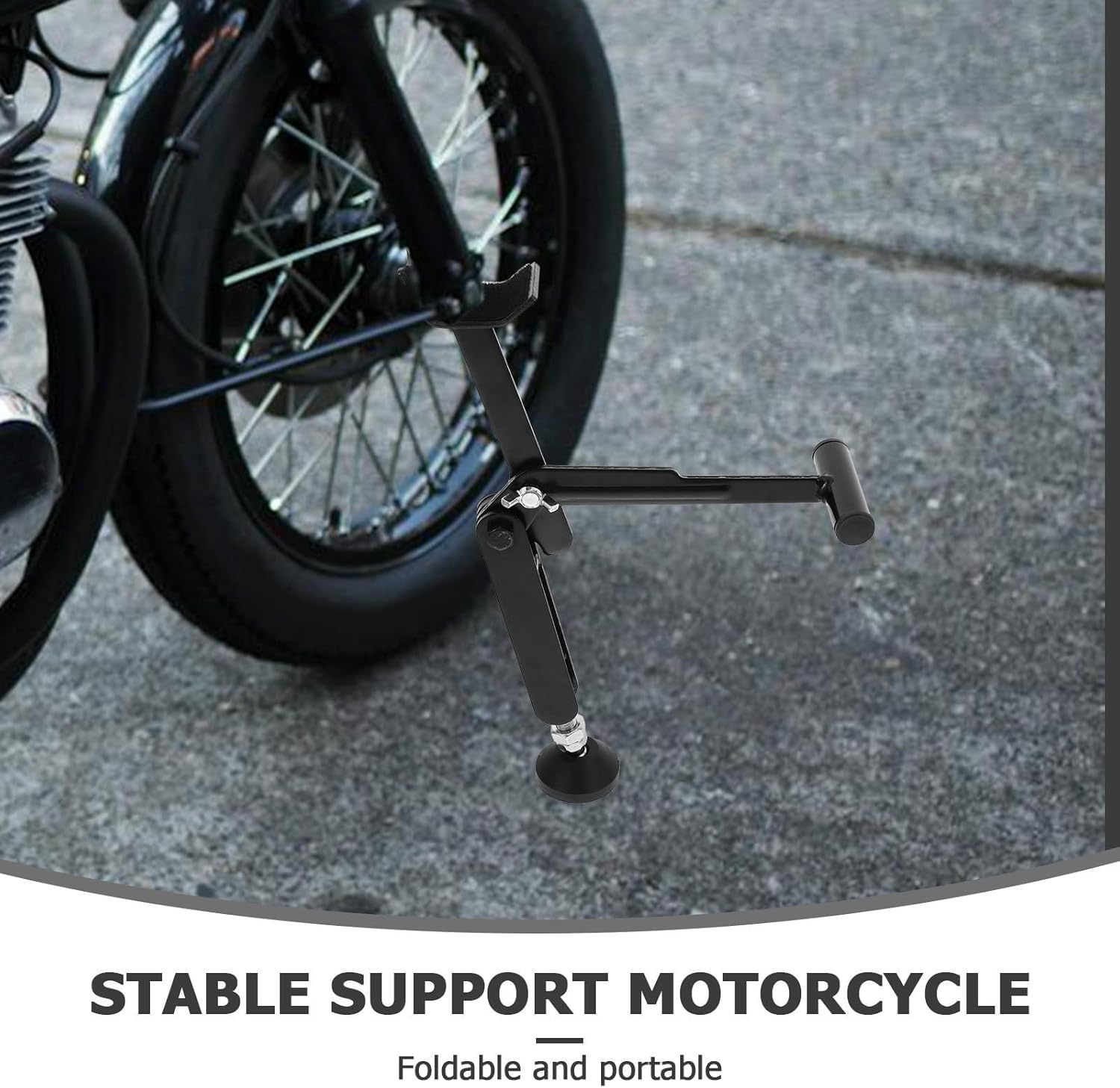 Package Include 1 x motorcycle support stand Features -Versatile maintenance tool: ideal for repairing and maintaining both the front and rear wheels of your motorcycle, offering comprehensive support rear motorcycle stand -Secure parking stand: ensures your motorcycle remains upright and stable, providing peace of mind during maintenance and parking motorcycle bikes wheel stand -Size:34.00X19.00X6.50cm/13.36X7.47X2.55in -Easy lifting mechanism: designed to lift and lower your motorcycle with minimal effort, making maintenance tasks less physically demanding dirt bike wheel lift -Material:Metal -Compact and portable: the foldable design makes it easy to carry and store, allowing you to perform maintenance anywhere, anytime motorcycle support stand -Color:Black -Metal materials: constructed from robust and durable materials, ensuring reliability and longevity for all your maintenance needs -Product Info:Get off the frameGoods Informationfront wheel fork stand To use, place the stand under the rear wheel and lift.rear motorcycle stand For dirt bike riders, the motorcycle rear wheel stand is a game-changer.dirt bike wheel lift This stand is ideal for trail rides where unexpected maintenance might be needed.motorcycle rear support Its portable design makes it easy to trails, ensuring you can perform or adjustments on the go