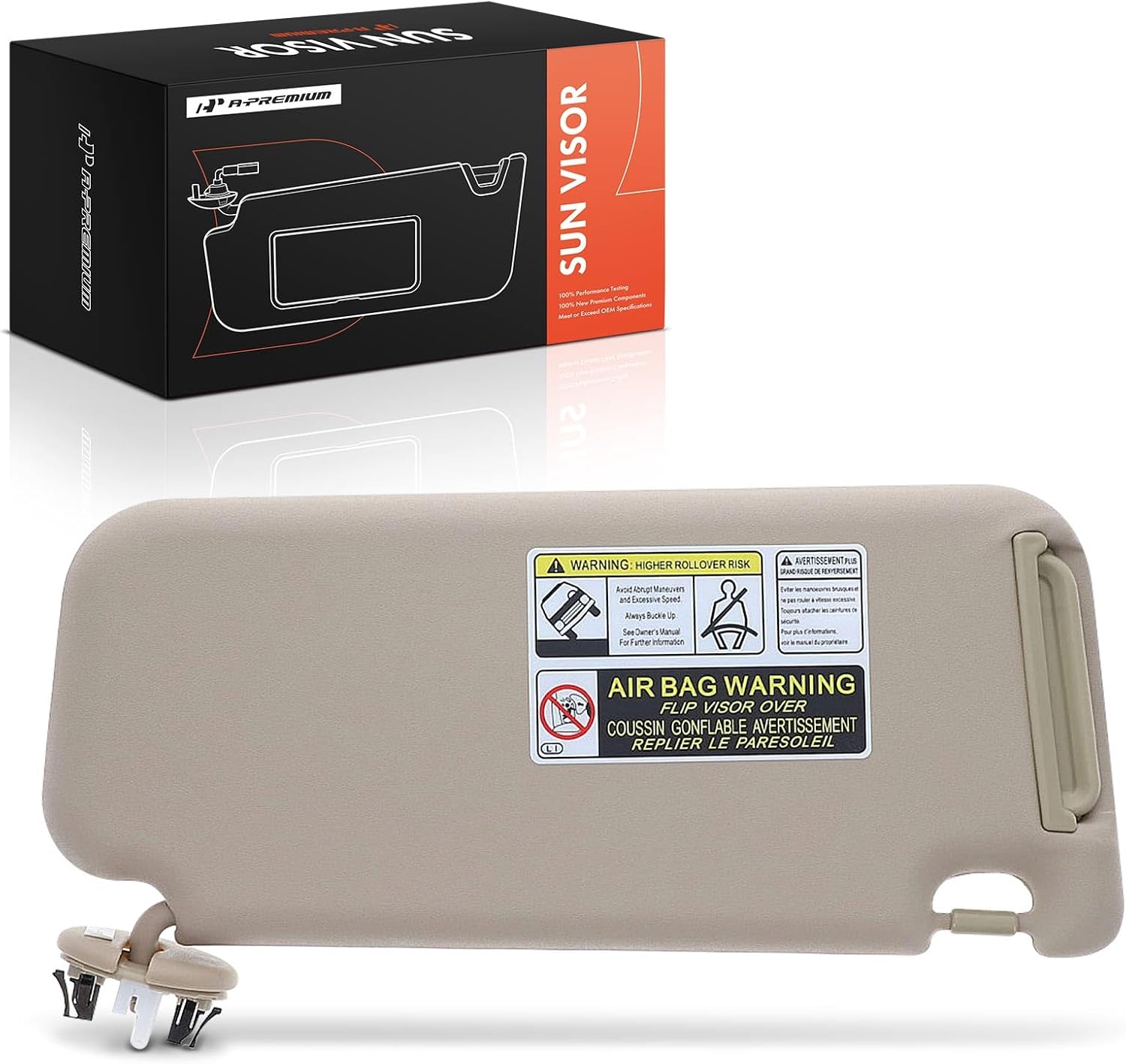 A-Premium Driver Left Side Sun Visor Compatible with Toyota RAV4 2010 2011 2012 - with Vanity Light, with Vanity Mirror, with Sliding Sun Visor Extension, Beige Color - Replaces 7432042502E1