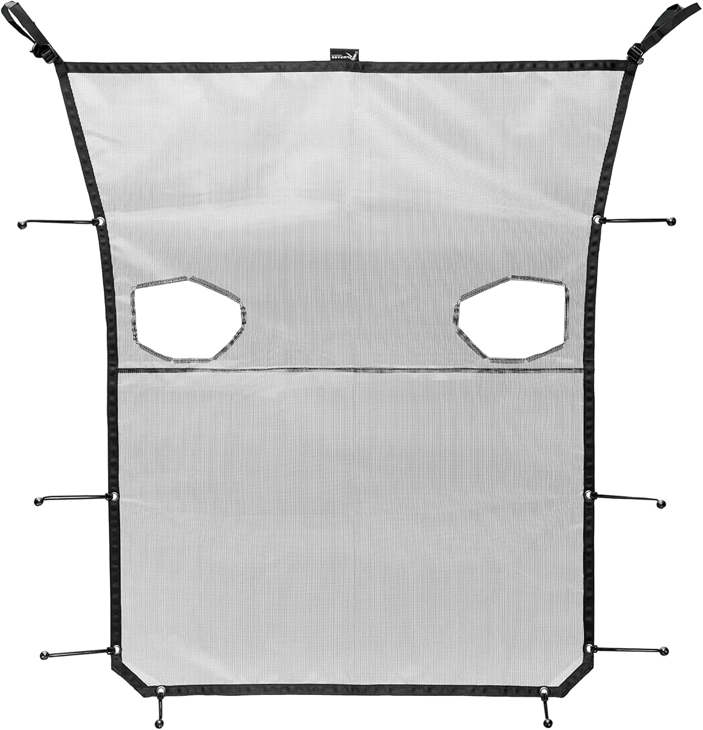 The Rugged Ridge Eclipse Sunshade gives the open air feeling you want, while providing added protection from harsh sunlight. Featuring reinforced mesh construction, the Eclipse Hard Top Sun Shade installs directly to the JL sports bar, helping protect front seat passengers from the sun's harmful rays when the roof panels are removed. Unique mesh construction also serves to greatly reduce wind noise and buffeting, making a more enjoyable open-top driving experience. Integrated straps with hook and loop backing are easy to install and there's no need to remove the shade to gain access to roof latches. The Eclipse Sun Shade can stay in place year round- making you fully prepared for that first sunny day.