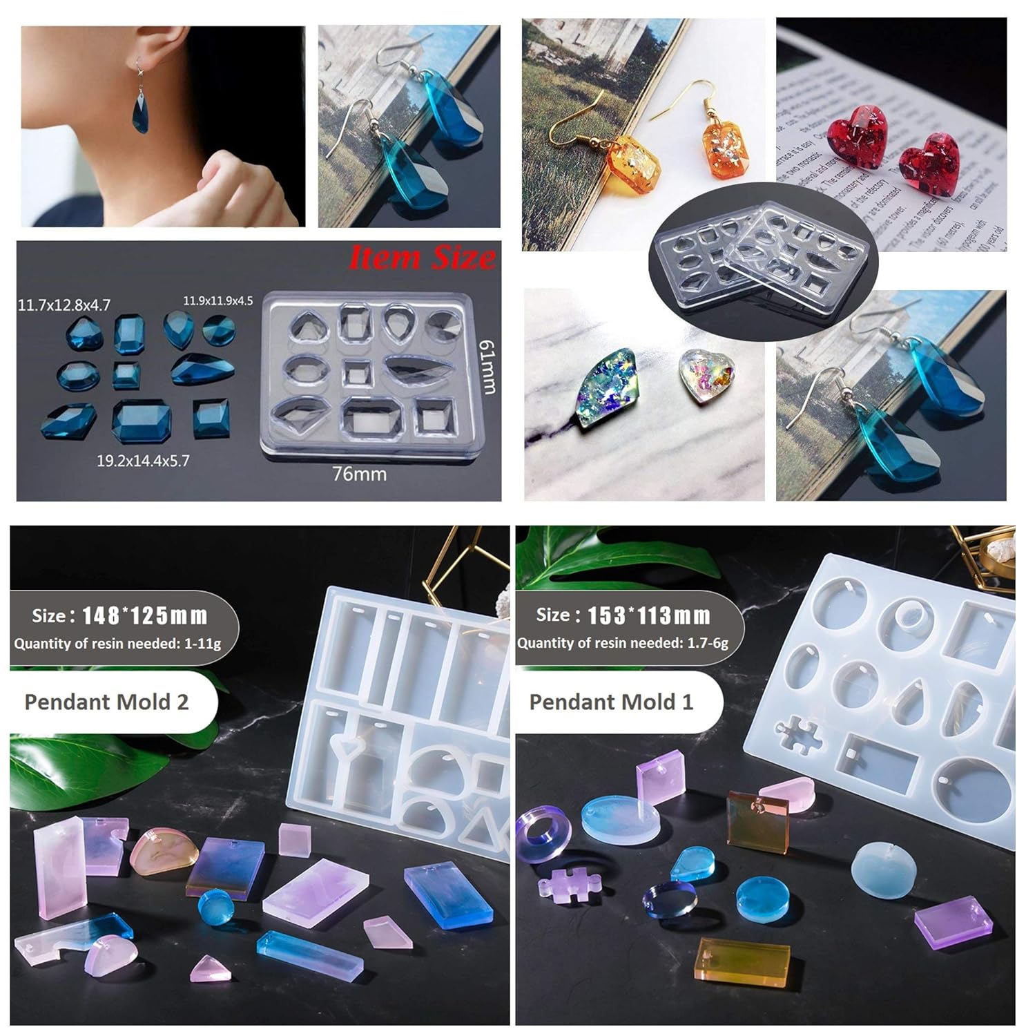Transparent UV Epoxy Resin for Casting & CoatingMore convenient: It can be used immediately, no need to do the proportion and mix.Faster: It solidifies within 5-30 minutes (depending on the quantity) with the UV lamp (they serve as manicures). The resins of two components, on the contrary, usually need 24-48 hours to stay solid.More stable: High yellowish resistance, neither cracks nor yellows with time.How to use: 1. We will need a jewellery mould and our resin, you can add other accessories such as beads or glitter if you want. 2. Simply press the bottle gently to let out the resin and deposit the amount that we need in the mould. If you want to add glitter or beads, you have to put them in the mould before the resin. 3. Dry the epoxy with the UV lamp for 2-4 minutes (if we are doing small pieces like the rings). 4. Take out the result from the mold.You can also check one of our pictures to see the making process with open back bezels!How to avoid bubbles: 1. Before using the resin, place it upside down to prevent air bubbles from escaping during extrusion. 2. Use a toothpick to concentrate the air bubbles on the surface of the resin. Puncture them with a pin or undo them by applying heat with a heat gun or a lighter.Package includes: 5x Transparent epoxy resin 30ml 1x Mini UV lamp (with USB cable) 1x Tweezers 2x Decoration sets 12x Silicone molds for jewelry making 100x Eyelets 13x Color liquid pigments 17x Open back bezels 2x No glue marks tapes length 5m
