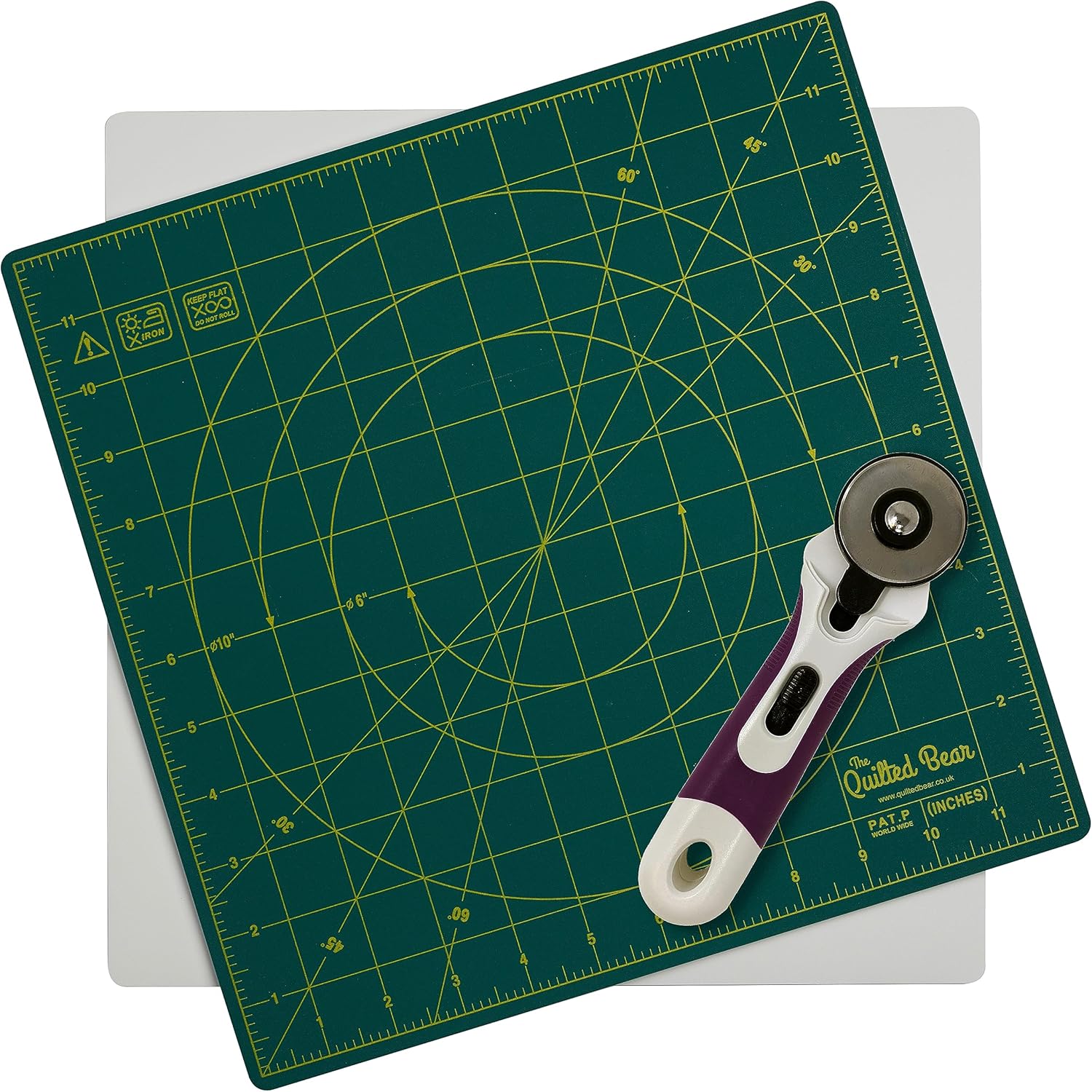 The Quilted Bear 360° Rotating & Lockable Self-Healing Cutting Mat 12" x 12" with 45mm Rotary Cutter - Blue: Your Ultimate Crafting Companion for Precision and Convenience.