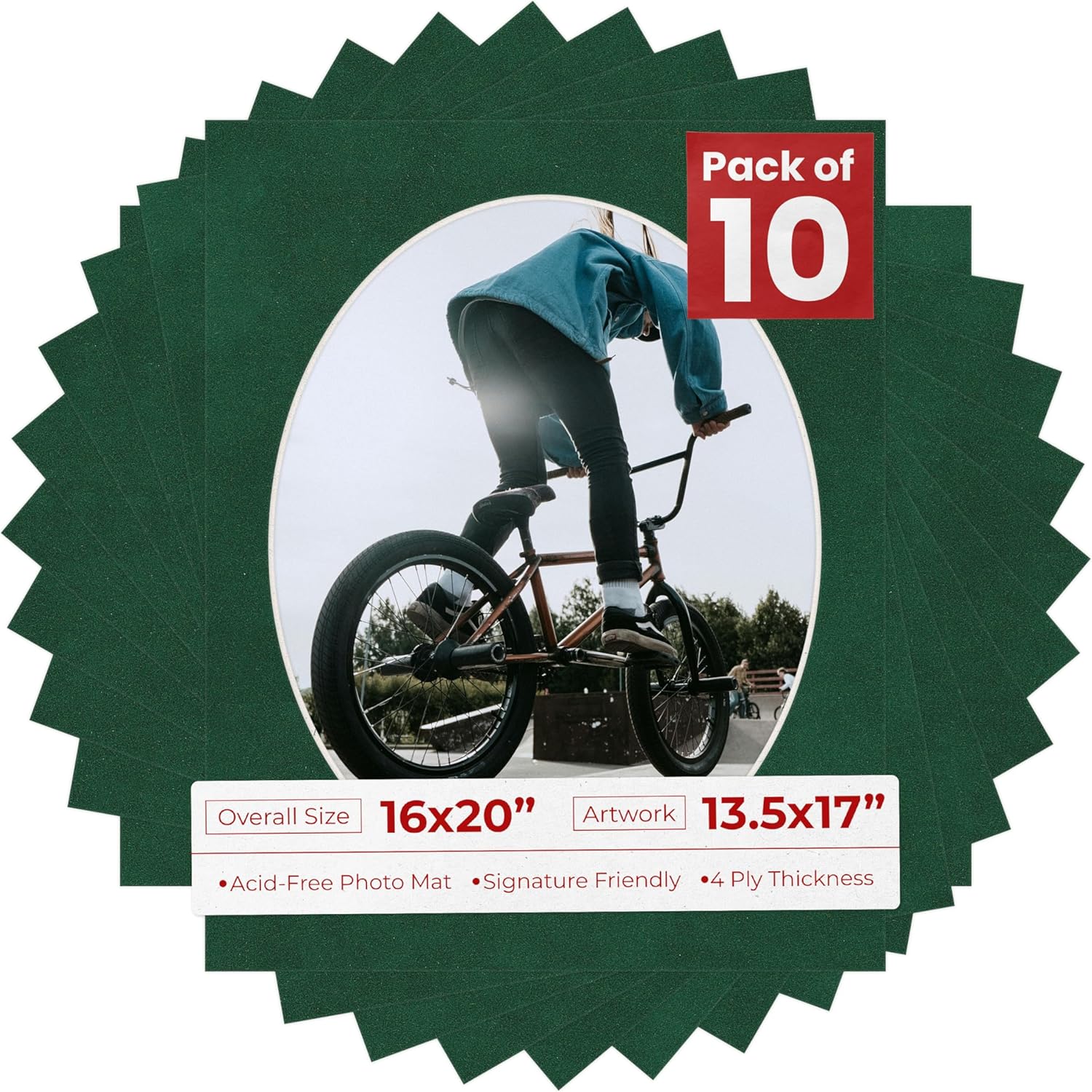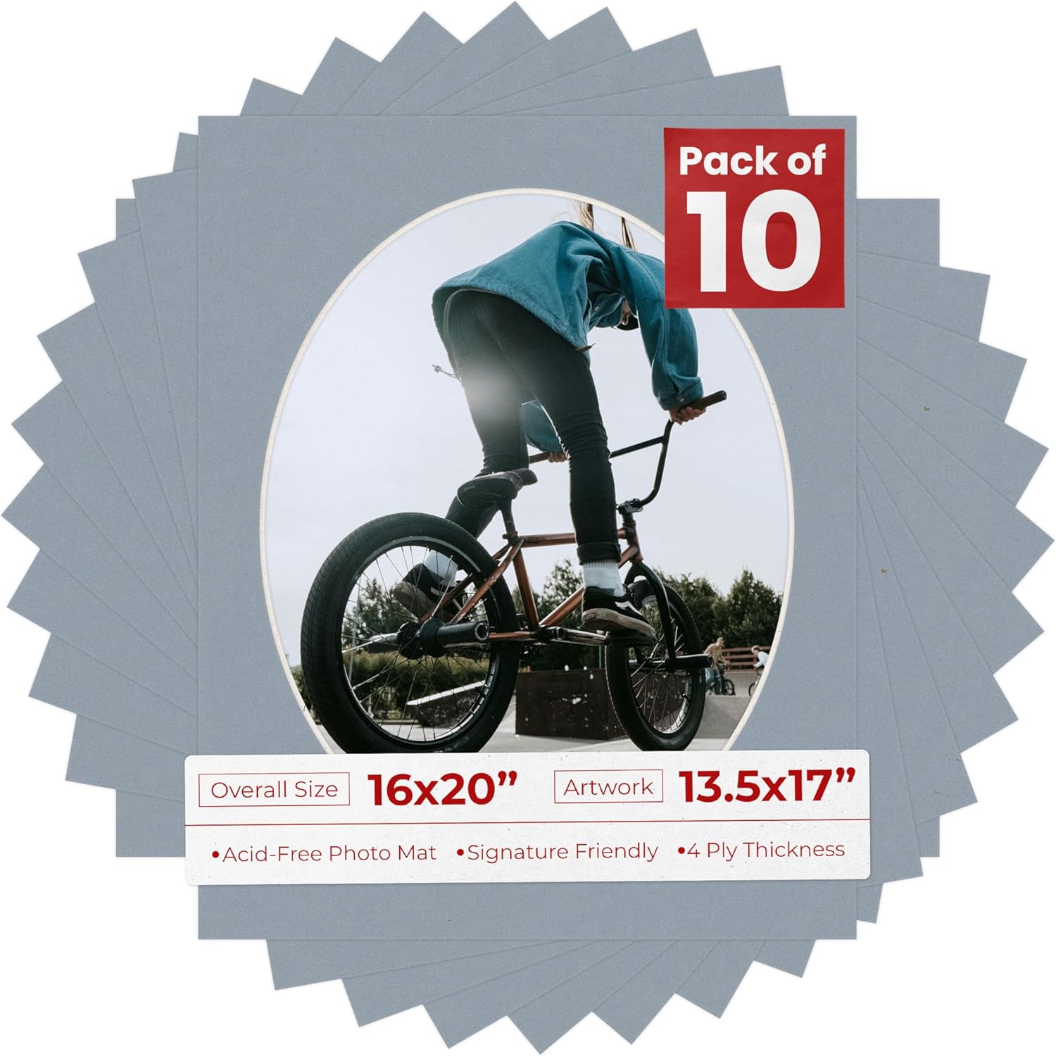 16x20 Mat Bevel Cut for 13.5x17 Photos - Precut Fresh Linen Canvas Oval Shaped Photo Mat Board Opening - Acid Free Matte to Protect Your Pictures - Bevel Cut for Family Photos, Pack of 10 Matboards