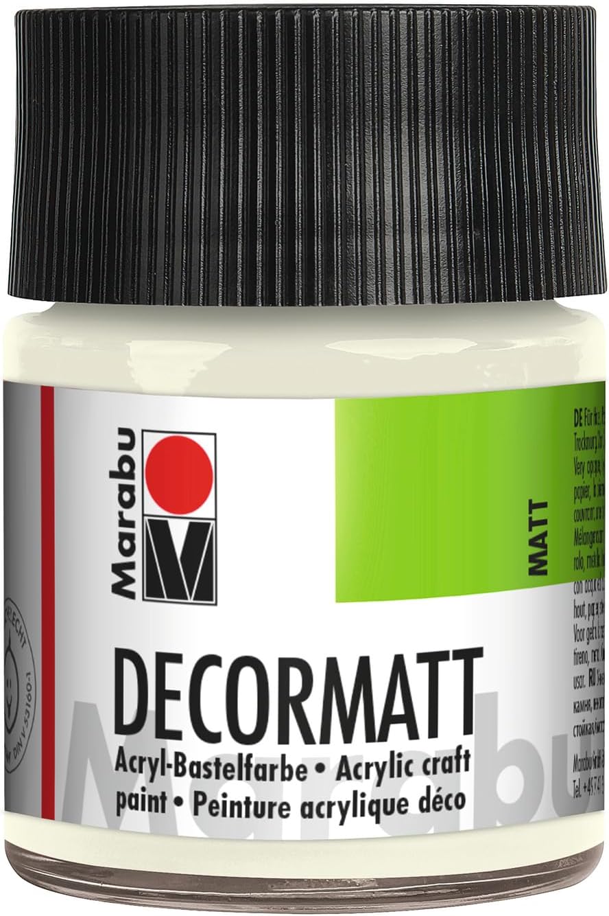 One for all: "Marabu Decormatt Acrylic" is suitable for a variety of decorative ideas and provides bright and intense colours. The velvety matte and creamy water-based acrylic paint is simply ideal for school, hobby, leisure or arts and crafts. The creamy properties guarantee a very pleasant paintability. The high-quality colour-intensive acrylic paint is very well covered, weatherproof, saliva-resistant and non-fading. Due to its particularly smooth texture, it is ideal for free painting, stencilling and stamping, for decoupage technique as well as traditional back glass and farmer painting. It can also be used for almost all craft techniques. In addition to wood, cardboard, paper, self-hardening modelling compounds or polystyrene, the painting paint from Marabu is also suitable for metal, clay, stone, glass, foam rubber or plastic - the possibilities are almost endless. All shades, including metallic, can be mixed with each other and diluted with water if necessary.