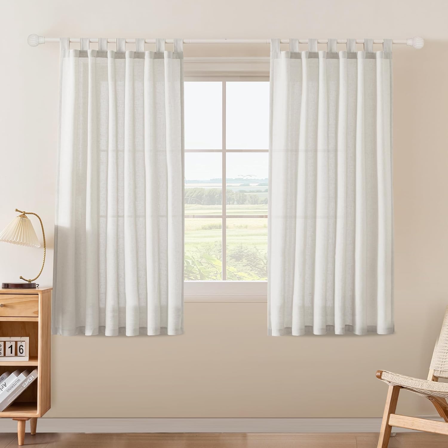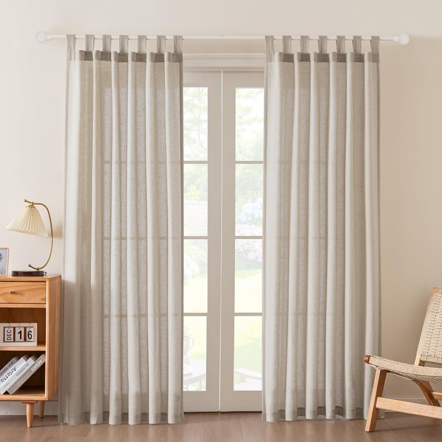Hang these FantasDecor Tab Tops Linen Blended Curtain Panels in the master bedroom or guest suite. Keep the sunlight out, reduce energy usage and provide privacy protection. Transfer your home decor and enjoy your family time.High FeaturesThese rich linen curtains, soft comfortable hand feeling, casual and natural pattern, provide you a relaxed and feminine home environment.Crafted from open weave linen blended fabric,sturdier, durable, vintage and elegant elements make the panels more draped and aesthetic.Semi natural linen drapes can not only ensure your privacy, but also enjoy the beautiful scenery outside the window freely.These beautiful and airy sheer panels is great choice for anyone seeking a simple yet elegant look for their rooms, it is not cheap looks but very rich effect.Curtain Header:Tab top for timeless looking, feature the curtain rods up to 1.5 inches diameter. Each panel contains seven (7) tab top loops.Multi Dimensions:52”W x 84”L / 52”W x 96”L / 52”W x 108”L for each panelAvailable in a vast array of colors: Dove, Stone, Off White, Natural, Ivory, Stone Blue, Pure White and new coming soon.Care Instruction:Machine washable for easy care, use only non-chlorine bleach when needed, tumble dry low and warm iron as needed.Warm Reminder:Recommend ordering 2 to 3 times rod width for proper look and fullness
