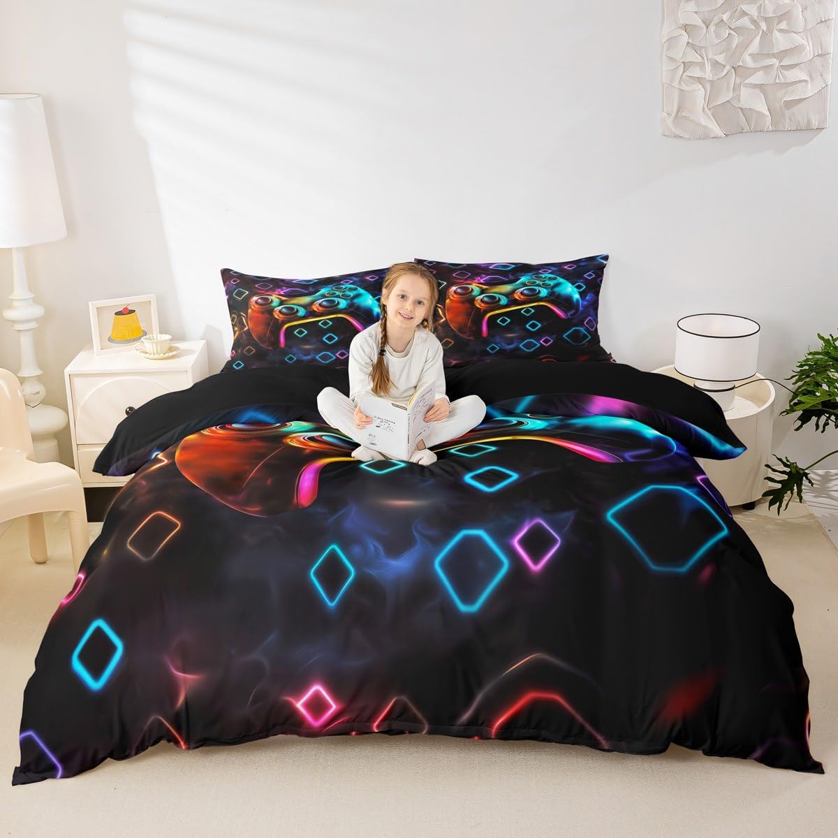 Package Include: Duvet Cover, Pillowcase; High Quality Duvet Cover Set Pattern Bedding Set, simply decorating your rooms any time you want, bringing you fresh feel for year round use. Polyester: Made from polyester microfiber, the sheet set offers strength, natural resistance to shrinking and a noticeably soft hand feel. Size Information: Toddler size 2pcs: 1 x Duvet Cover 42" x 58", 1 x pillowcase 20" x 30".Without Comforter. Twin size 2pcs: 1 x Duvet Cover 68" x 90", 1 x pillowcase 20" x 30".Without Comforter. Full size 3pcs: 1 x Duvet Cover 80" x 90", 2 x pillowcase 20" x 30".Without Comforter. Queen size 3pcs: 1 x Duvet Cover 90" x 90",2 x pillowcase 20" x 30".Without Comforter. King size 3pcs: 1 x Duvet Cover 104" x 90", 2 x pillowcase 20" x 36".Without Comforter. Personalize your bedroom: Beautiful design and colorful print, makes your bedroom unique and brings you a wonderful dream. Washing instructions: Machine wash separately in cold water,hang dry, do not bleach. Occasion: The cute soft duvet cover bedding sets designed for Children ,Adult, Men, Women, Teens. This duvet cover set is also suitable for full seasons, Spring, Summer, Autumn and Winter.