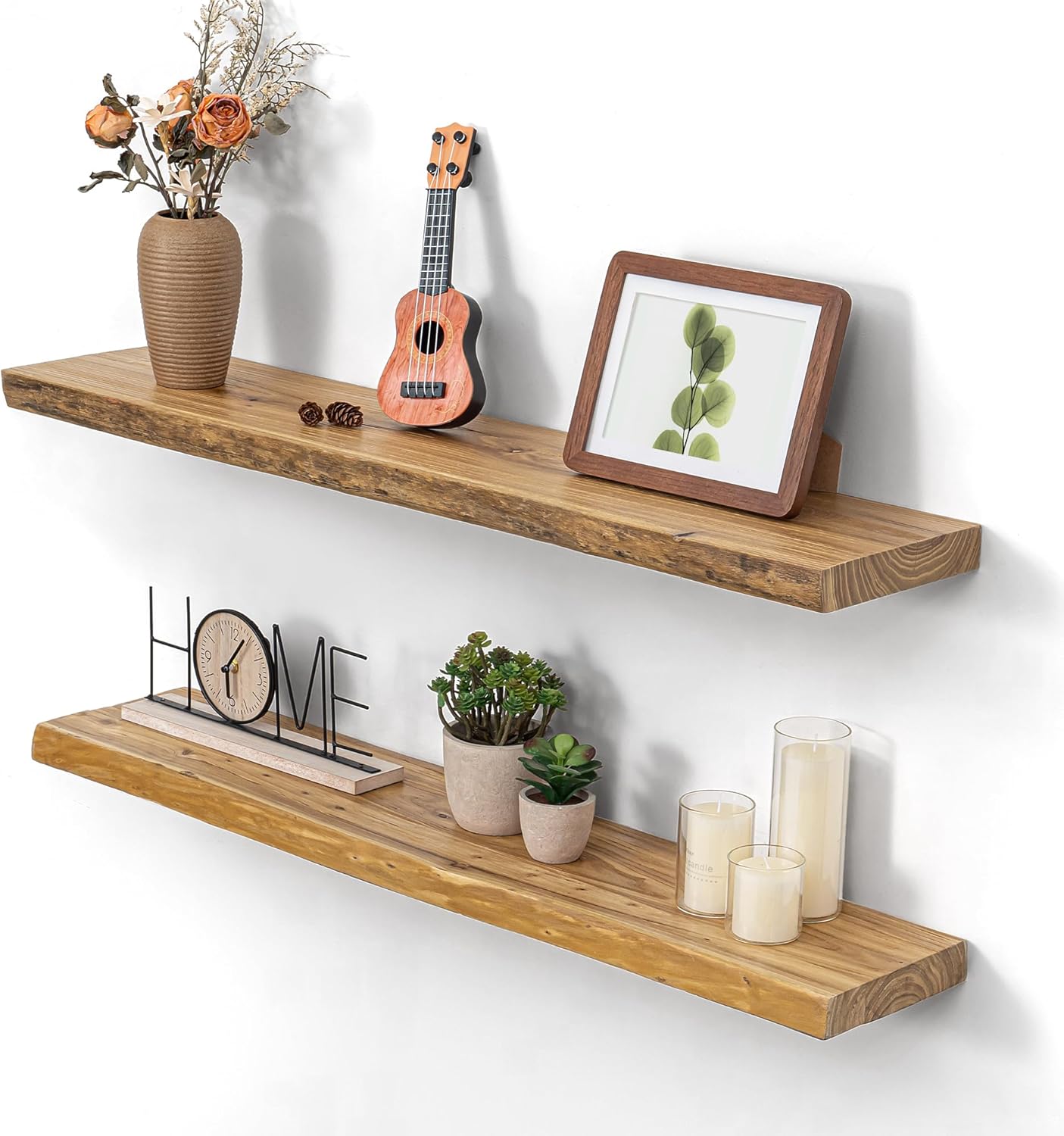 | Included Components | 1 Elm Wood Shelves with Live Edge, 1 Smart One-Piece Matel Brackets, Level & Instruction, Short Screws, Wall Screws & Drywall Anchors |