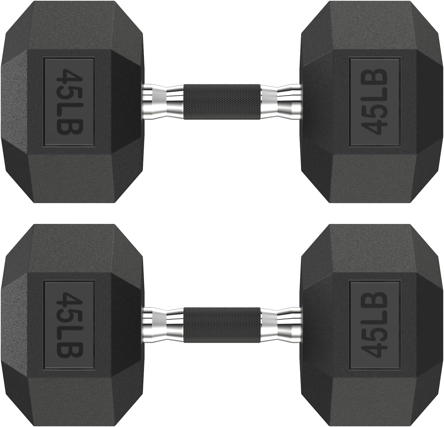 HANDBODE Hex Dumbbell Rubber Hex Dumbbells are one of the most versatile pieces of strength equipment you could have in your home gym, they allow you to focus on every muscle group in your body, and provide an efficient workout in any space. The ergonomic handles are chrome plated, provide protection from corrosion. Rubber head helps prevent damage to flooring or exercise mats Hexagon-shaped head is ideal for workouts ranging from traditional strength training to bodybuilding. Great for circuit training, provides a stable foundation for exercises like dumbbell plank rows and pushups. 5 Advantages Of Dumbbells 1. Increased Stabilisation and Muscle Activation. 2. Identifies and Eliminates Strength Imbalances. 3. Better Awareness About Injury Prevention. 4. More Freedom of Movement. 5. Versatile and Effective. Note:It is normal to have some oil on dumbbell to prevent it from oxidizing.The New Rubber Dumbbell do have some rubber smell, the odor will dissipate after a period of time.