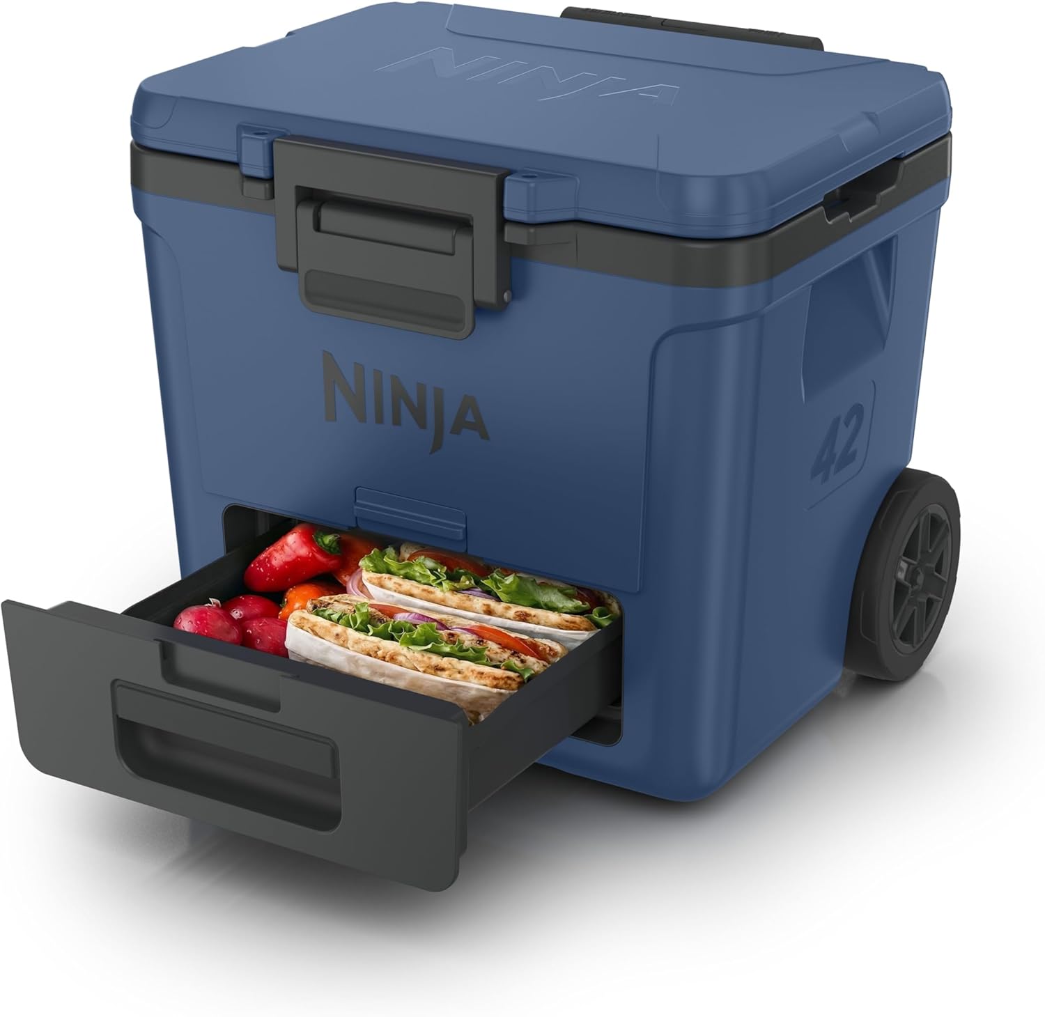 Meet the Ninja FrostVault - the cooler with premium ice retention and fridge-temp dry storage. With FrostVault Technology, cold transfers into the Dry Zone to keep food cool, dry and separate at food-safe temperatures (under 40° F) for days. 30-quart capacity fits up to 48 cans – plenty of room for all your favorite drinks. Streamline your outdoor adventures with heavy-duty construction and premium lid, latch and handles for easy access, storage, and transport. The Ninja FrostVault wheeled cooler is a must-have for any camping or fishing trip, easily rolling alongside your gear like tents, cots, tables, and chairs. Whether you’re packing fishing rods, lines, lures, or beach essentials like umbrellas, towels, and blankets, this cooler keeps everything fresh. Perfect for beach vacations, it pairs well with stylish beach bags, coverups, and women’s fashion accessories to complete your vacation essentials.