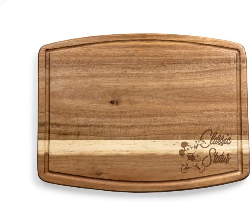 What could be better than the perfect cutting board? One featuring vintage Mickey and Minnie Mouse, of course. This ovale acacia cutting board blends everyday kitchen function with timeless Disney charm, creating a piece that’s as practical as it is delightful to display. Sized for daily use, this wooden chopping board is ideal for slicing fruits, breads, and cheeses while offering a comfortable surface that’s easy to maneuver. The built-in juice groove helps catch drips and spills, keeping your counters cleaner during prep and making serving straight from the board a breeze. When it’s time to entertain, this cutting board steps into the spotlight as a serving tray. Arrange a cheese and charcuterie spread, serve appetizers, or present desserts with a touch of classic Disney style. The warm tones of acacia wood paired with the vintage Mickey and Minnie design make it a natural fit for casual dinners, holiday tables, and relaxed get-togethers. Crafted for durability and backed by a lifetime guarantee, this board is designed to be enjoyed for years to come. It also makes a memorable gift for Disney fans, home cooks, or anyone who appreciates kitchen essentials that combine function, personality, and a little everyday magic.