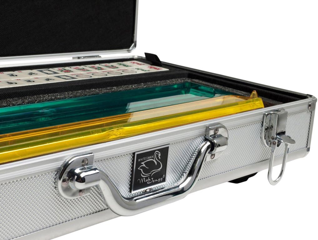 White Swan Mah Jongg sets are the highest quality American Mahjong sets available today. This luxurious product was designed by a team of Mah Jong players and advisors, and is crafted to the highest specifications. It is intended for the discerning Mahjongg player that wants to own the best!The design team incorporated noticeable upgrades from ordinary budget Mah Jongg sets. Most importantly, you will notice the absolutely perfect tiles that are the White Swan trademark. Large and smooth, these tiles feature crisp and clear characters with clearly recognizable red, green, and black colors. Absolute perfection!And it gets even better. You will also notice that these White Swan American Mah Jongg sets come with modern (all-in-one) tile racks & pushers. These colorful tile racks with built-in pushers require no assembly or disassembly. They are ready for immediate game play and are easily stored in the padded forward compartment of the carrying case at the conclusion of your game.White Swan Mah Jongg sets come in an array of beautiful, high quality aluminum cases that feature reinforced ergonomic handles, extra strong latches and hinges, as well as beautifully accented corner protectors.Open the case and discover numerous other upgrades, such as the padded inside lid, perfect for keeping your tiles and other components in place during transport. The tile trays are strong, precisely sized and encased in non-woven fabric, ensuring that your tiles remain clean and organized at all times.If you want to become the envy of your Mah Jongg group, go ahead and treat yourself to a White Swan American Mah Jongg set. Compliments are guaranteed!