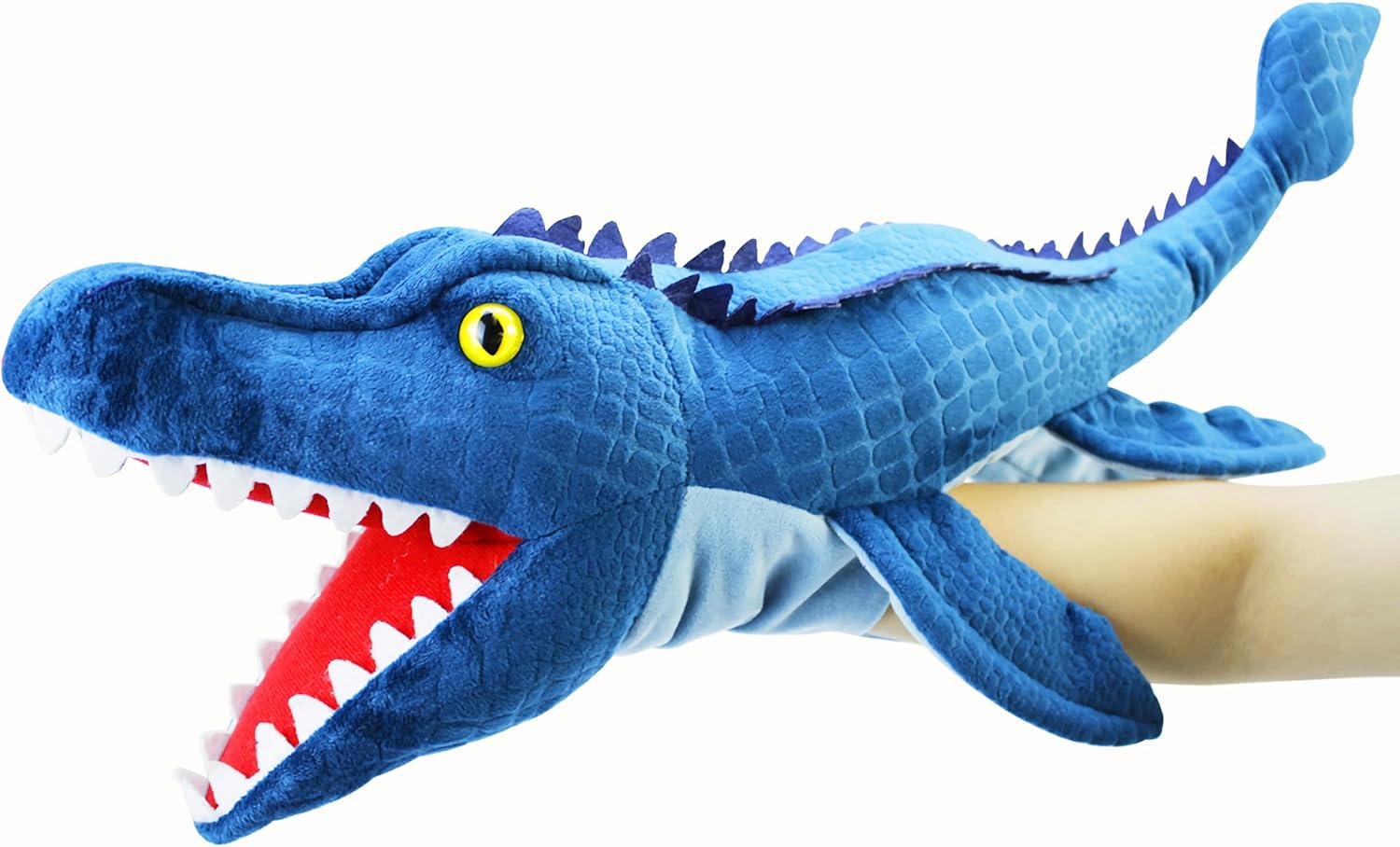Movable Open Mouths!!!Great for encouraging imaginative play, puppet show, a puppet stage, creative for classroom or church setting, motor skills, hand-eye coordination, communication skills, self-confidence, and social-emotional connections. Size: Animal hand puppets are approx. 40 cm/ 16 inch tall, suitable for the palms of most people; Due to different palm sizes, adults can use their fingers to control the arms and mouth, while girls or boys with small hands only need to control the mouth Material: Hand puppet toys are made of plush with fine workmanship, soft and elastic, comfortable to touch, safe and reliable, which won't cause harm to your little guys if being bitten; Please do not swallow the contents inside Maintain: Easy!!If they gets dirty, you can clean them with a brush or a washing machine, and they can be dried after washing; Please note that the product should not be exposed to fire Notes:Manual measurement, please allow slight errors on size.The color may exist slight difference due to different screen display.