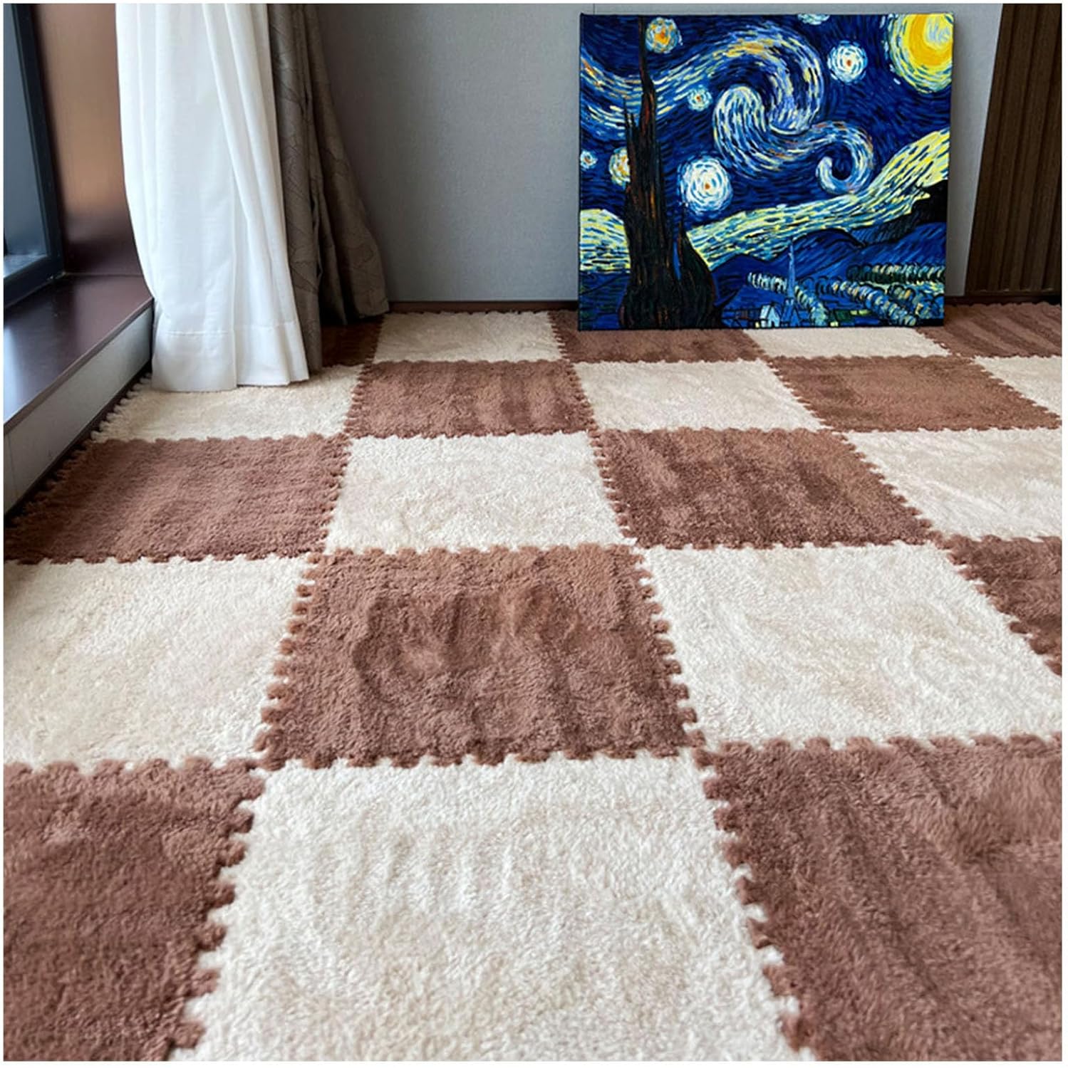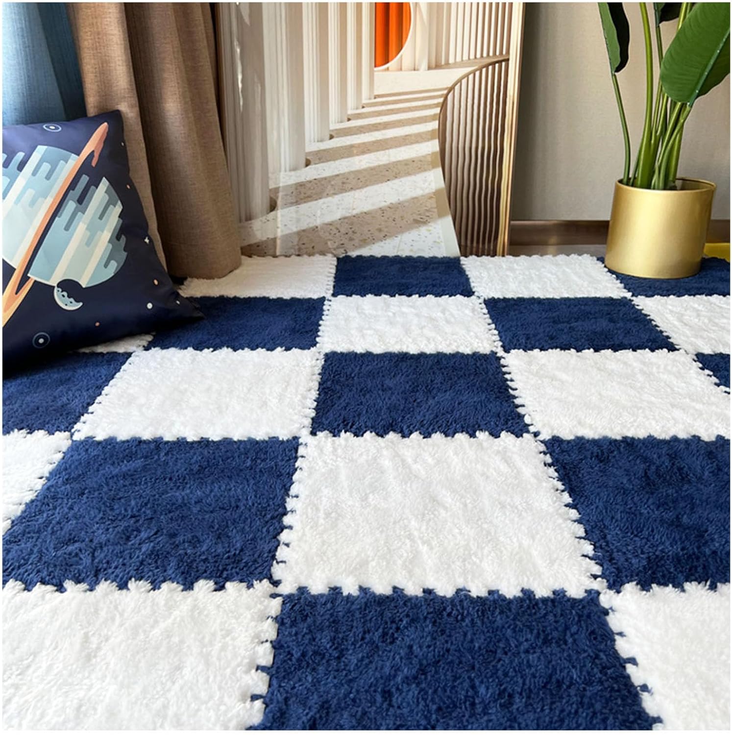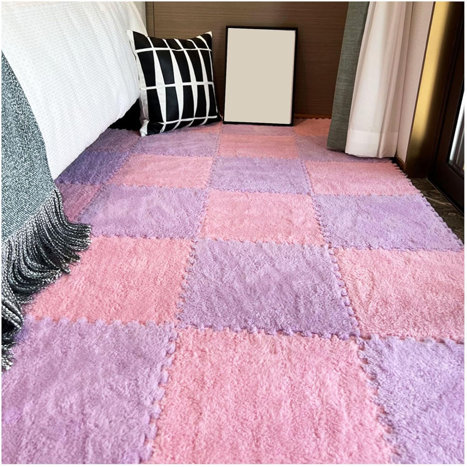 Our interlocking plush puzzle foam floor mats are designed to elevate your living space while providing a safe and comfortable environment for your family. Available in an array of dreamy colors, these mats not only serve as a stylish decorative element but also enhance sensory experiences, making them perfect for playrooms, nurseries, or any area where comfort and aesthetics meet. **Product Overview:** - **Product Name:** Interlocking Carpet Tiles - **Pack Size:** 20 plush puzzle foam mats - **Dimensions:** 11.8 x 11.8 x 0.23 inches (30 x 30 x 0.6 cm) or 11.8 x 11.8 x 0.39 inches (30 x 30 x 1 cm) - **Material:** Crafted from soft Shu velvet and durable ethylene vinyl acetate (EVA) These versatile mats provide excellent floor protection, making them ideal for high-traffic areas. Their cushioned texture is perfect for leisure and relaxation, enabling you to create a cozy atmosphere for family activities or quiet moments. **Installation Tips:** To prepare the mats for installation, gently tap two mats against each other to remove any surface lint and debris caused by the machine cutting process. **Care Instructions:** For everyday maintenance, simply wipe stains with a damp towel. For a deeper clean, use mild soap and a lint brush, then air dry to prolong the lifespan of your mats. Please avoid machine washing and vacuum cleaning to maintain their quality. **Customization Options:** We offer custom colors, textures, and sizes to ensure that your mats perfectly complement your home decor. **Important Notes:** 1. Please allow slight size variations due to manual measurement. 2. Color discrepancies may occur due to different display settings; refer to the actual product for true color. 3. If you have pets, please supervise them to prevent scratching or chewing. Transform your space with our plush puzzle foam floor mats, where comfort meets style!
