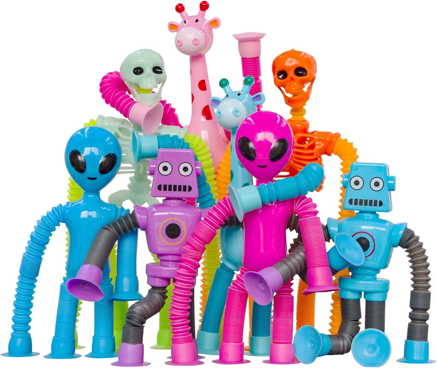 [Cool Design Alien Fidget Toy] These creative telescopic suction cup pop tube toys can be folded, bent, stretched, rotated in different ways, make a pop sound, enhances your kids fine motor skills and stimulate the tactile senses.