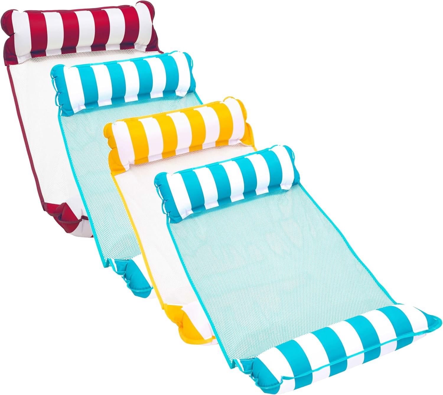The Monterey boasts a 4-in-1 inflatable float system: hammock, lounge chair, exercise saddle, and Drifter. The Multi-purpose lounge quickly converts for relaxation, socializing, and even exercise in the pool. Lounge features comfortable cool weave fabric and folds easily for portability. Easily inflate and deflate with duo lock inflation system. The Monterey inflatable float system is a great addition to the summer pool this season and delivers fun so you can socialize, relax and even exercise. -Versatile: Monterey 4-in-1 Hammock offers 4 unique positions! Hammock, lounge chair, drifter and exercise saddle. Great for free-motion water (aerobics) exercise. -Recline-Relax-Dream: Supportive mesh lining keeps you cool as you relax on the water’s surface