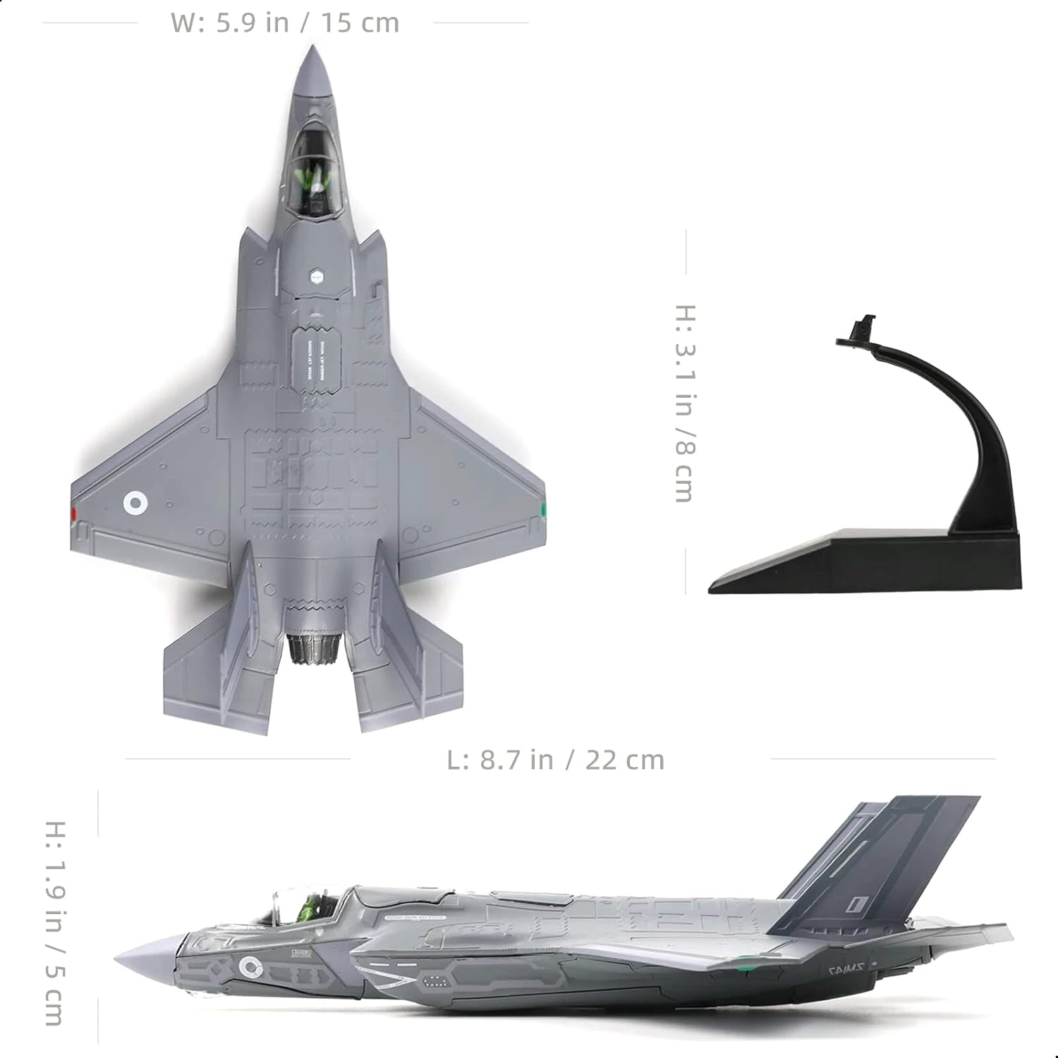 Features: Model Aircraft: United Kingdom Royal Air Force F-35B Stealth Aircraft Fighter Collection Aircraft: United Kingdom Royal Air Force F-35B Stealth Aircraft Fighter Model 1:72 Scale Model Length Is 8.7in Prototype Aircraft: The Model Aircraft Is Strictly Restored According To The Original Aircraft Proportions And Details. High Quality Die Cast Alloy Model. Decor Model: Model Aircraft Is Very Suitable To Decorate Your Desk, Showcase And Shelf. Perfect Gifts: The Great Gift Choice For Birthday, Christmas, New Year To Your Lover, Family And Friends, Also Suitable For Aircraft Collection Enthusiast. Specifications: Product Model: United Kingdom Royal Air Force F-35B Stealth Aircraft Fighter Product Scale: 1:72 Product Material: Alloy+Plastic Product Size: 22cm X 15cm Packaging Includes: 1* United Kingdom Royal Air Force F-35B Stealth Aircraft Fighter Model 1* Display Stand