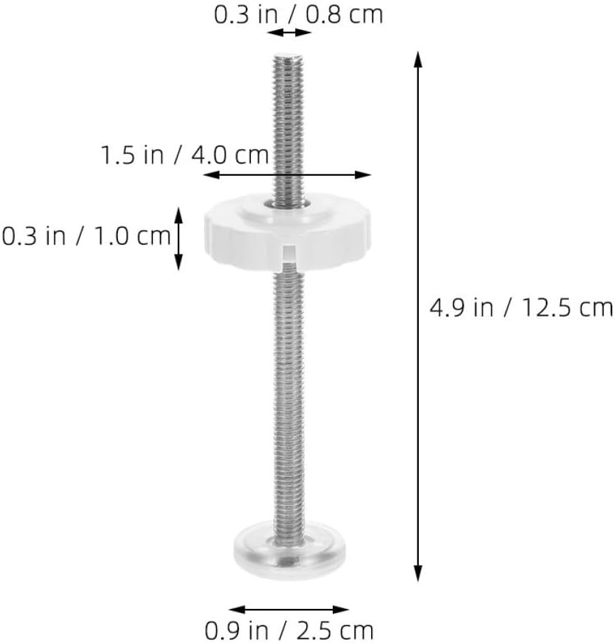 Package Include x Threaded Spindle Rods Features -Size:12.50X2.50X0.80cm/4.91X0.98X0 small screws. -Material:Aluminum alloy, ABS -Size:4.00X4.00X1.00cm/1.57X1.57X0 pet gate. -Easy installation: no drilling or any tools required. Simply rotate the nut to the to lock gate tightly Guard Railing Screws. -Color:White hardware - The smooth head of the screw prevents scratching walls or stairs. Do not need to worry about this problem Threaded Rod Screws. -Made of sturdy material, these pressure door screws are and stable enough to last long enough to keep your and pets inside the stair door mounted. - tall -Threaded spindle rods-- great for banister gate, pet gates, stair gate, gate, etc window screws. - Suitable for most mounting pressure doors such as safety doors, dog doors, stair doors. Suitable for family, pet store, pet hospital, kindergarten, etc pressure.Goods Description gates screws This is very easy installation: no drilling or any tools required.fixing screws Simply rotate the nut to the to lock the gate tightly.Children Guardrail Accessories These pressure gate screw are made of solid ABS and aluminum alloy, and stable enough for long time use, keeps your and pets in the stair gate