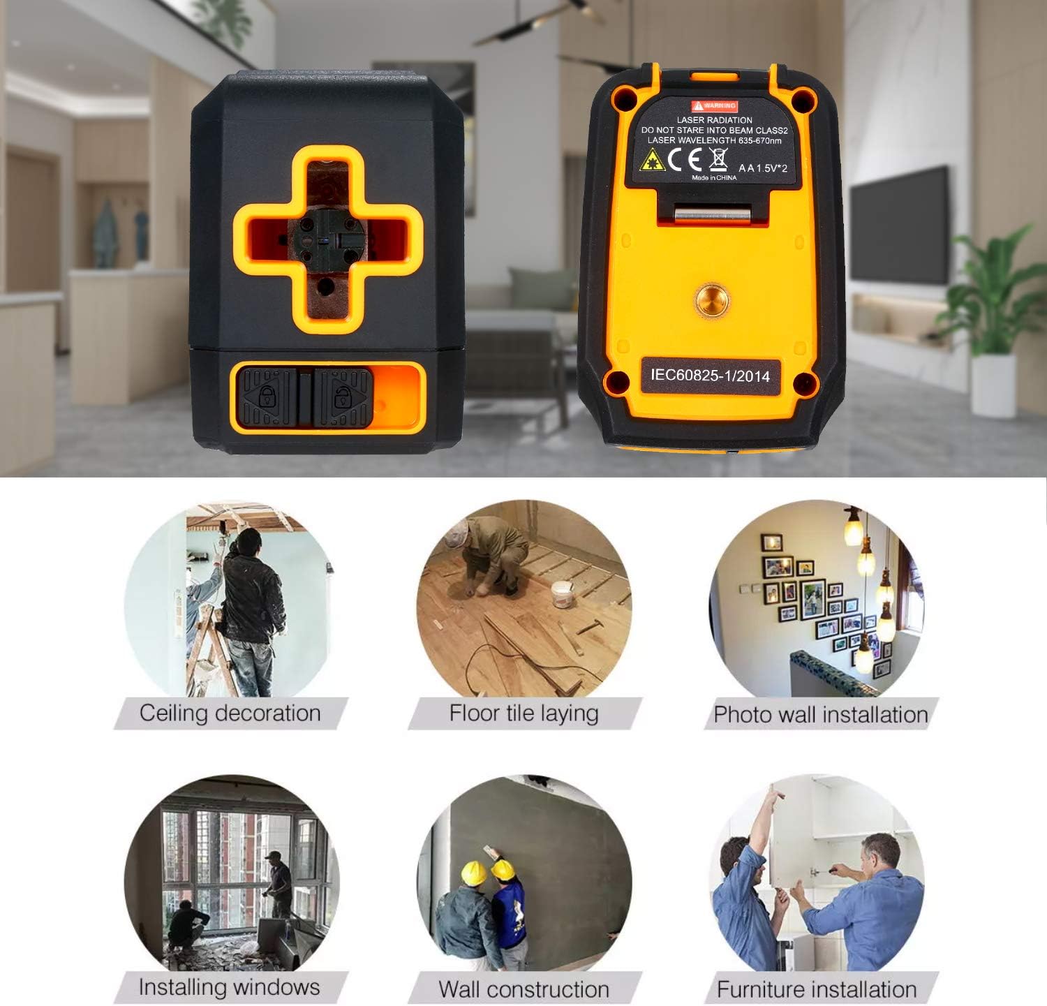 This level is widely used for any that requires straight lines or accurate measurement, such as ing picture, shelf or air-conditioning installation, building construction, interior decoration, DIY room projects etc. Specifications: Material: ABS Color: Black&O Model: T03(Red Beam) / T04(Green Beam) (Optional) Class: Class Ⅱ, Output ≤1mw length: 630-670nm for red beam; 505-550nm for green beam Leveling Accuracy: ±3mm/10m Leveling/Compensation : 4°±1° Connector Interface: 1/4" Thread Working Distance(Line): 15m/49ft for red beam; 30m/98ft for green beam Operating Time Red Beam: First gear: 30hours Second gear: 38hours Third gear: 46hours Fourth gear: 62hours Green Beam: First gear: 7hours Second gear: 10hours Third gear: 13hours Fourth gear: 16hours Power ply: 2*1.5V AA batteries (Not included) IP Rating: IP54 Operation Temperature: -10℃~50℃ Storage Temperature: -25℃~70℃ Item Size: 8 * 8 * 6cm / 3.14 * 3.14 * 2.36in Item Weight: 216g / 7.61oz Package Weight: 428g / 15.09oz Package Size: 12.5 * 13.5 * 8cm / 4.92 * 5.31 * 3.14in Packing List: 1 * T03 Level 1 * Stand 1 * Storage Case 1 * User Manual (English)