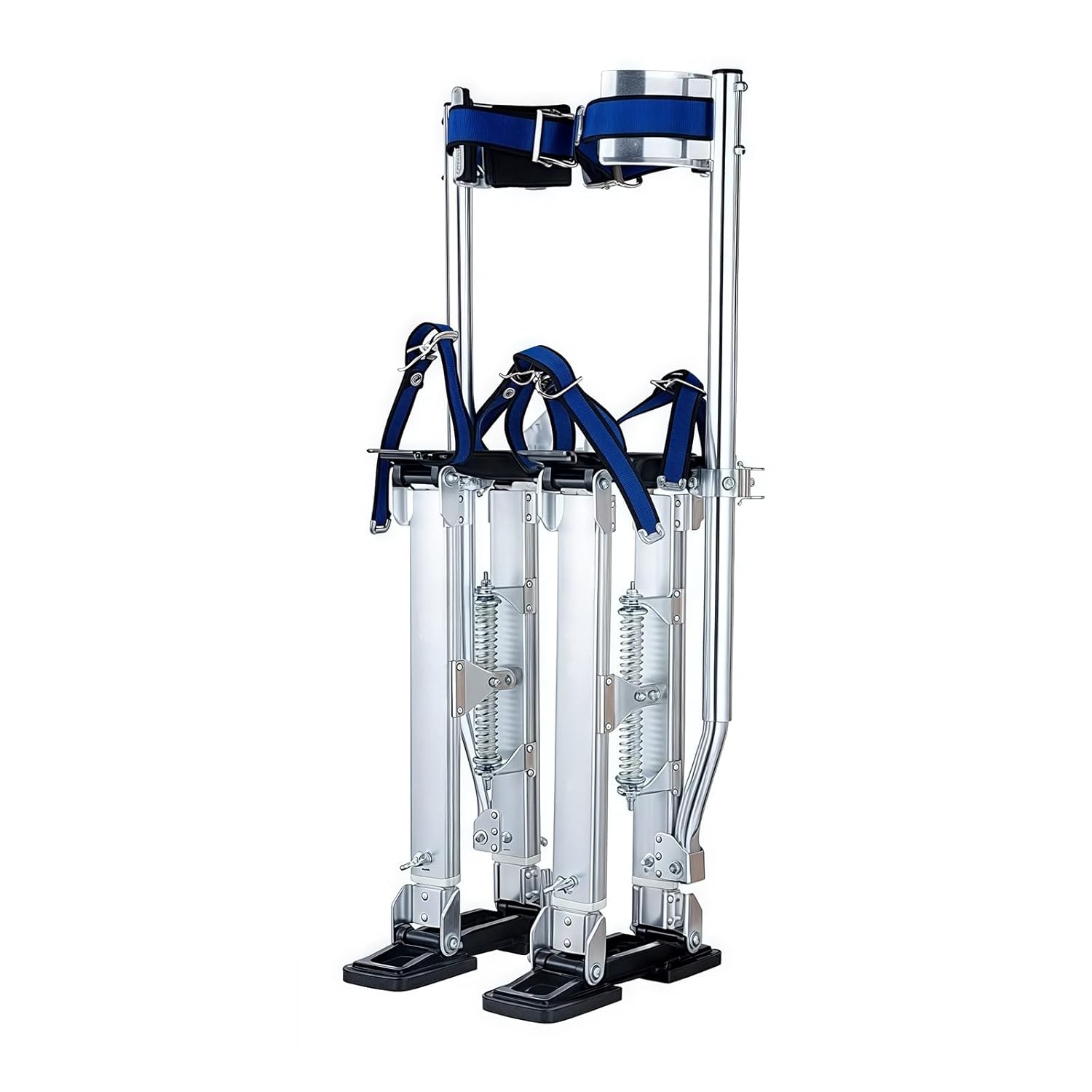 The plasterboard stilts feature premium aluminum alloy construction, offering robust durability and lightweight design. With waterproof and rust-resistant properties, they ensure long-lasting performance without damage concerns.The dual-spring structure enhances stability and flexibility, helping you maintain balance effortlessly and master stilt techniques with greater skill.The integrated triple-fixation design secures the legs, soles, and heels, providing comprehensive safety assurance for worry-free operation.Premium rubber soles enhance traction on surfaces, effectively preventing slips while protecting floors from scratches.SpecificationsProduct Name: Adjustable StiltsMaximum Weight Capacity: 242 lbs / 110 kgAdjustable Height Range: 15-23in , 18-30in , 24-40inFrame Material: Aluminum AlloyBase Material: RubberColor: SilverPackage Contents1× Gypsum Board StiltsImportant Notice:1.All product images are taken under natural light, and there may be slight color differences due to differences in lighting conditions, shooting angles, and computer resolutions. The actual product shall prevail.2.Due to manual measurement and different production batches, there may be a size error of 1-3 centimeters. We apologize for any inconvenience caused.Product Instructions: 1. When putting on stilts, use a sturdy support for assistance. 2. When standing up, firmly grasp a stable object and rise slowly.3. Do not adjust to the maximum height during initial use—begin at a lower height and gradually increase as you gain proficiency. 4. Balance may be unstable during first use; assistance is recommended to prevent falls and avoid personal injury or property damage. 5. Move only forward and backward—avoid sideways tilting to maintain stability.