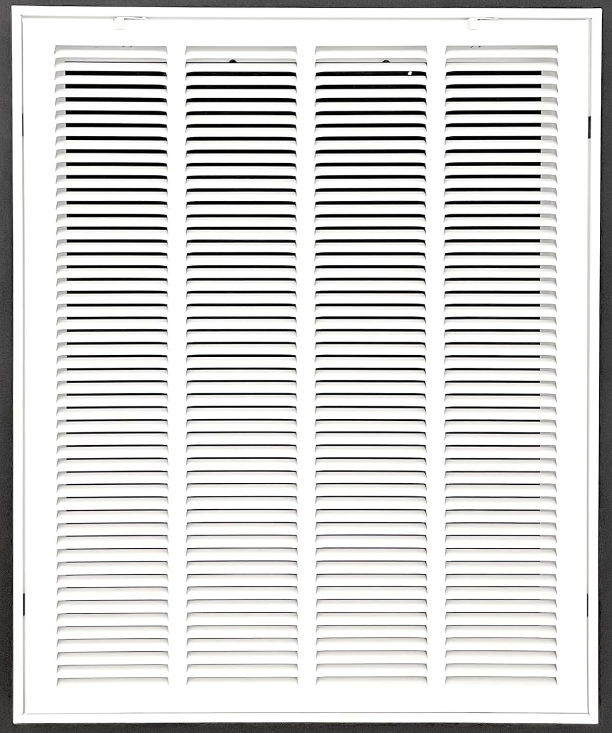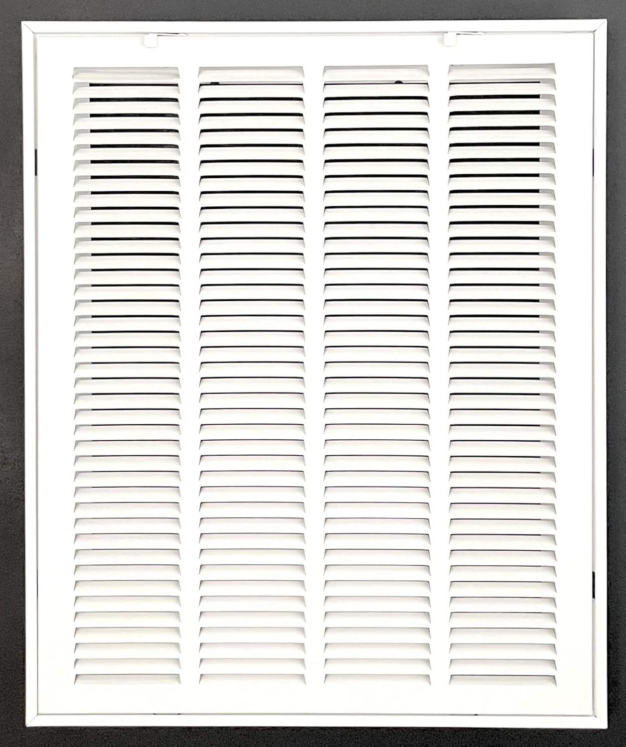 Kompell Aire Filter Return Grille listed size 24” wide and 20” tall is for the duct opening measurement. The grille has hinged face door for filter of same size with thickness of 1”. Overall outside dimension is 26.6” wide and 22.6” tall. Size Selection GuideMeasure the size of the air duct opening(the size of the “hole” ). Select the listed size that match the duct opening size.The outside or overall size is 2.6” larger for both width and length so it can cover the “hole”.Do not use outside measurement for size selection or it would be too bit to fit.Width vs HeightThe first measurement in a return grille size is the width(horizontal measurement), the second measurement) is the height(vertical measurement). For example: If the hole on the wall is 24" wide by 20" tall, buy this 24x20 grille.