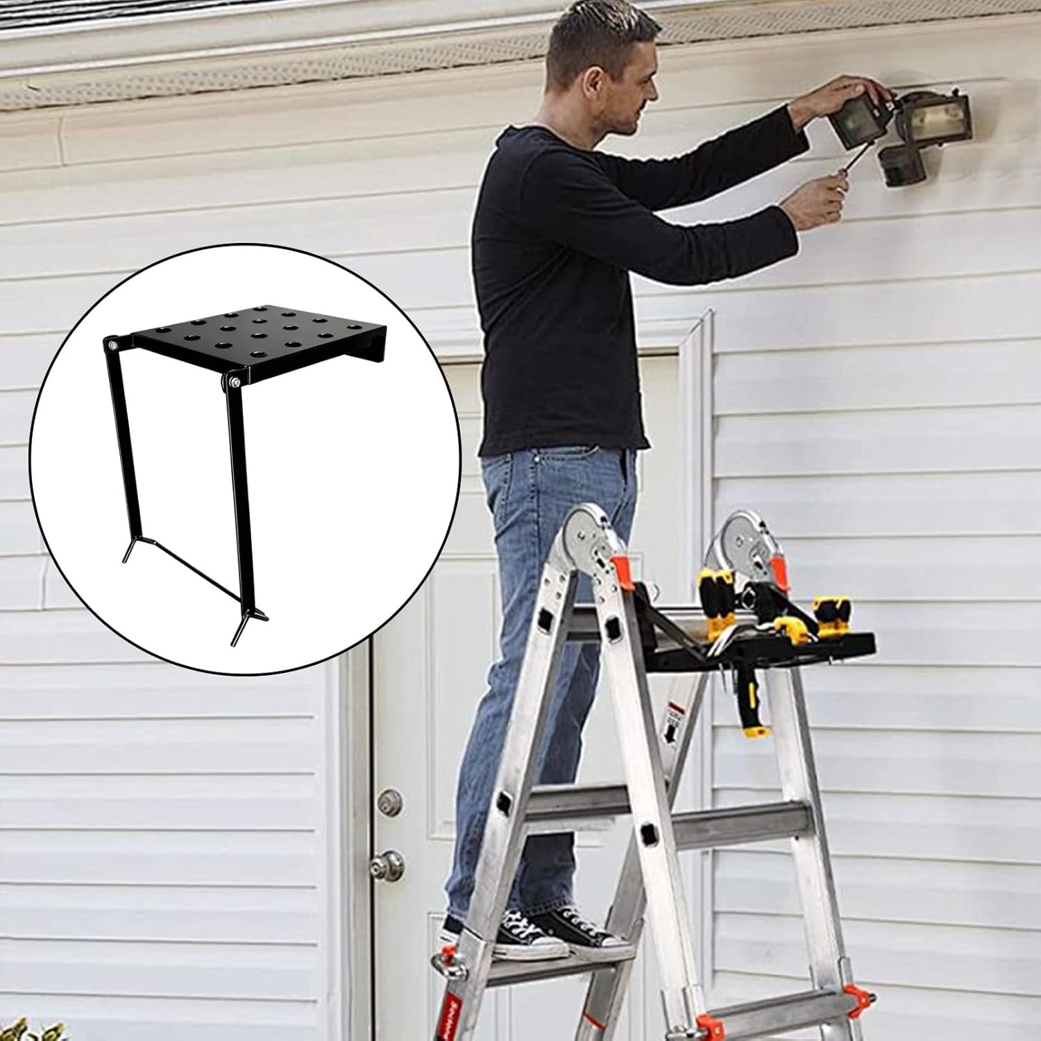 The extendable ladder is a necessary household tool designed for versatility and durability in various environments. Its adjustable and foldable features allow for easy storage and transport, ensuring stability during use. As a sturdy garden tool, it supports landscaping tasks and access high areas in your backyard or patio. This ladder is invaluable for agricultural work, decking projects and home repairs, including furniture assembly or roof maintenance. Its robust design makes it ideal for garage and workshop environments where reliable accessories are needed. Whether caring for your garden or completing household chores, this extendable ladder will smoothly meet your needs with practicality and strength. Specification Product size: about 30 x 26.5 cm/11.8 x 10.5 inches. Material: metal. List 1 x work platform ladder Note: 1. Due to lighting effects and viewing angles, there may be color differences in the product. 2. Due to manual measurement, there may be errors in the product size, please understand.