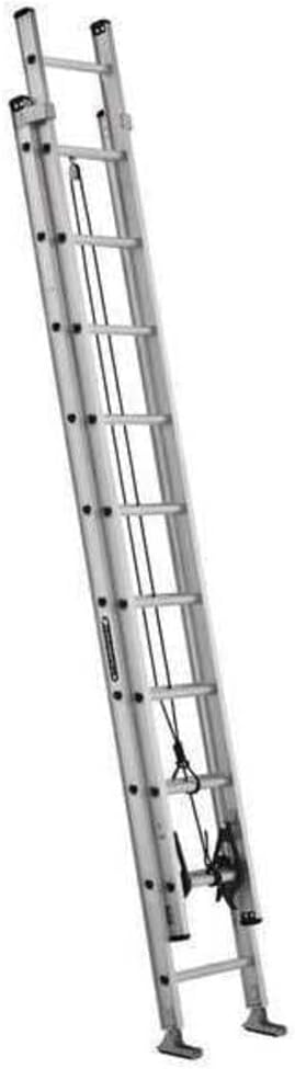 Product Description This 24-foot Louisville Ladder aluminum extension ladder has a 300 lbs. load capacity, rated ANSI IA. This extension ladder is great for working on light construction and residential jobs. It features D shaped rungs that are fully serrated for a slip resistant surface. It has mar-resistant rail end caps to protect landing surfaces and provide longer life. Includes two extra heavy duty slide guides at the top of the base section combined with a stop on the fly section to prevent over extending the extension ladder. Features steel swivel safety shoes with metal shields specifically designed for extension ladders, ensures stability and safety even on uneven surfaces. From the Manufacturer Our most popular 24-foot, aluminum, type IA extension ladder, 300-Pound duty rating. It is favored by contractors and Industrial users. It includes quick latch, a safety rung lock, mar-resistant end caps, swivel safety shoes and D-shaped rungs for comfortable standing. It includes a rope and pulley, and outside slide guides for easy entending. The full I-Beam construction keeps the ladder rigid to keep users at ease when climbing. Meets OSHA, CSA and ANSI Standards.