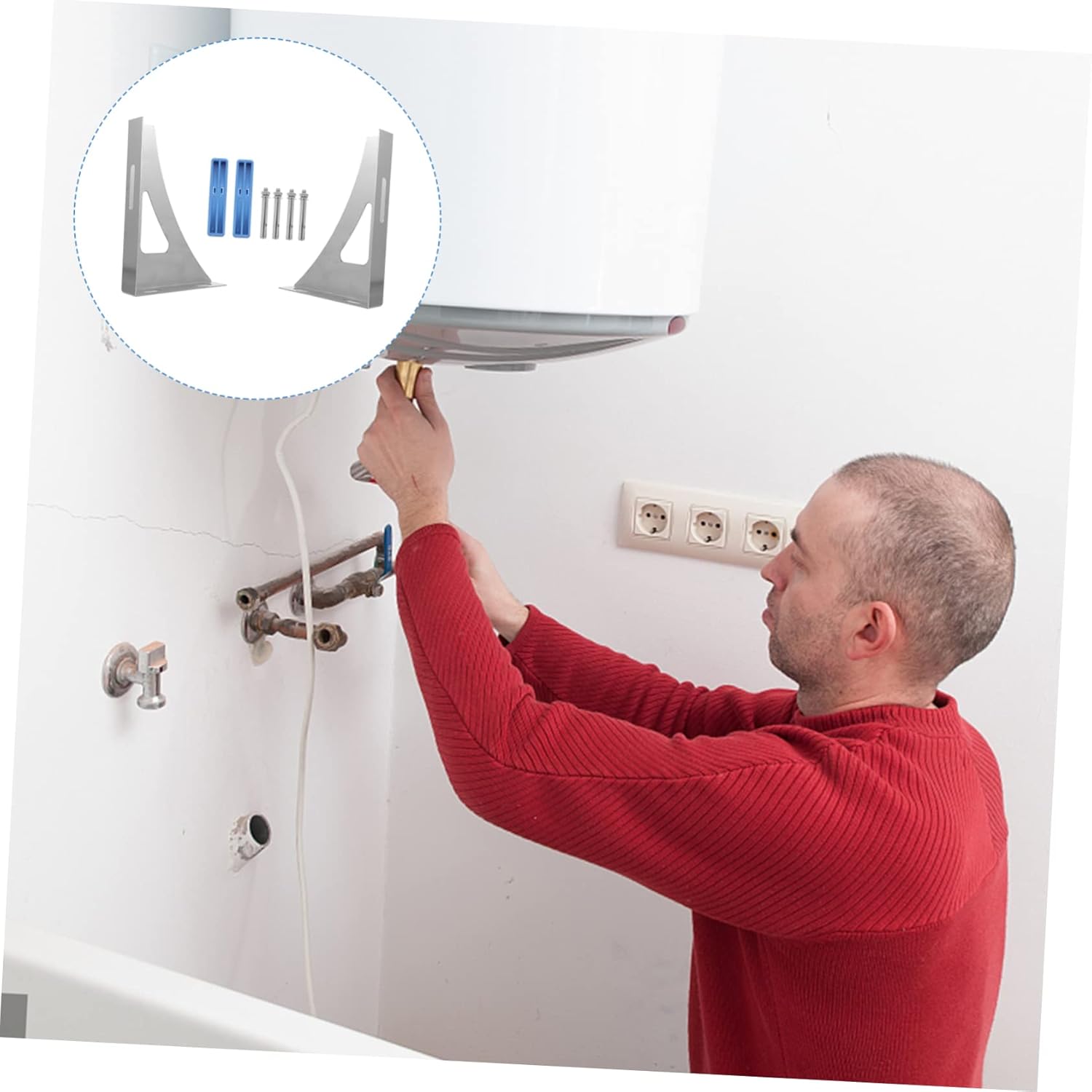 Package Include 2 x electric water heater brackets Features -Size: About 23.00X17.20X3.50cm/9.04X6.76X1.38in water heater hollow support. -Material: Stainless Steel wall shelf brackets. -Color: Silver fuel oil mixing bottle. - The electric water heater stand is made of stainless steel and the surface is polished, strong load-bearing Water Heater Rack. - These water heater shelf can free up of space by placing the electric water heater on the wall Water Heater Bracket. - The excellent workmanship of our product will bring you a good experience water heater mount bracket. - Easy and convenient to install and use, it is a very useful water heater support bracket water heater hollow stand. - Polishing treatment, to , to paint heater wall bracket.Goods DescriptionWater Heater Stand The brackets are plenty strong for a water heater, as long as you’re it into studs.water heater electric The excellent workmanship of our product will bring you a good experience.wall mount Our brackets are the perfect solution to get your water heater oven off of the ground