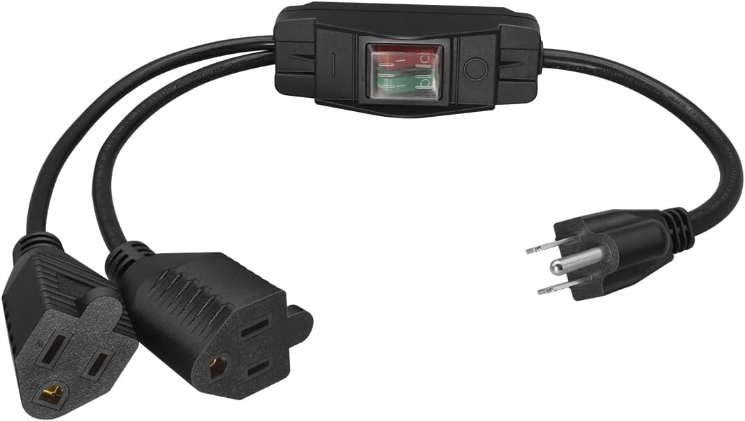 AC plug splitter cord creates 3 additional grounded outlets for connecting electrical devices when only 1 outlet is available. Each outlet has its own cord, you can plug into a 2-prong or 3-prong non-polarized US plug. without covering the other outlets.Suitable for use with Christmas lights, computers, routers, scanners, power transformers, lamps,monitors, scanners and other devices requiring a 3-pin connection. It's particularly suitable for space-constrained areas (such as behind desks, next to TV cabinets, and in server racks), preventing cable tangles and maintaining a neat and organized wiring environment.