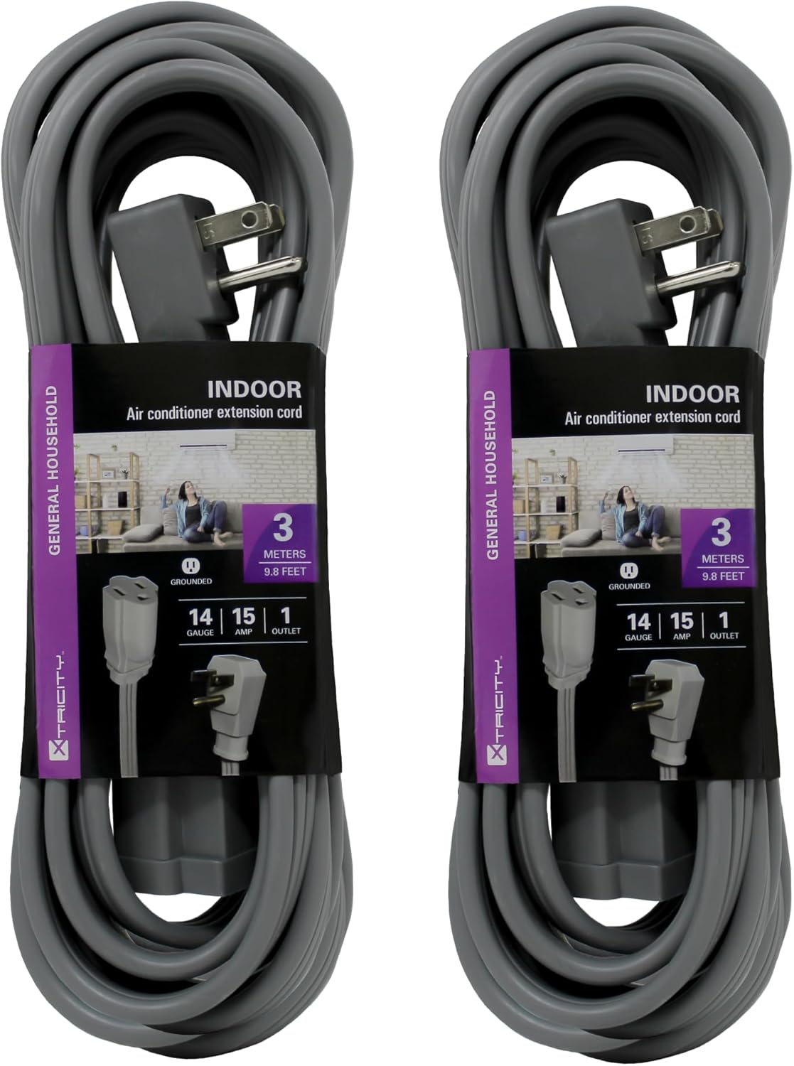 This Xtricity 6 Foot Grey Air Conditioner Extension Cord provides extra power extension for your home or commercial space. The space saving flat plug allows for placing furniture and appliances up against the wall. Specifications6’ (2 Meters) 1 Grounded Outlet 14 Gauge 15 Amp ETL Listed Application Areasliving room bedroom kitchen basement hallway garage office laundry room workshop store Ideal for: Washers Dryers Air Conditioner Power Tools Eco-Friendly Packaging The protection of the environment and energy efficiency is communicated through all Xtricity products. We only use recycled carton paper and eco-friendly ink in our packaging. By doing so, we do our share in keeping our environment green.