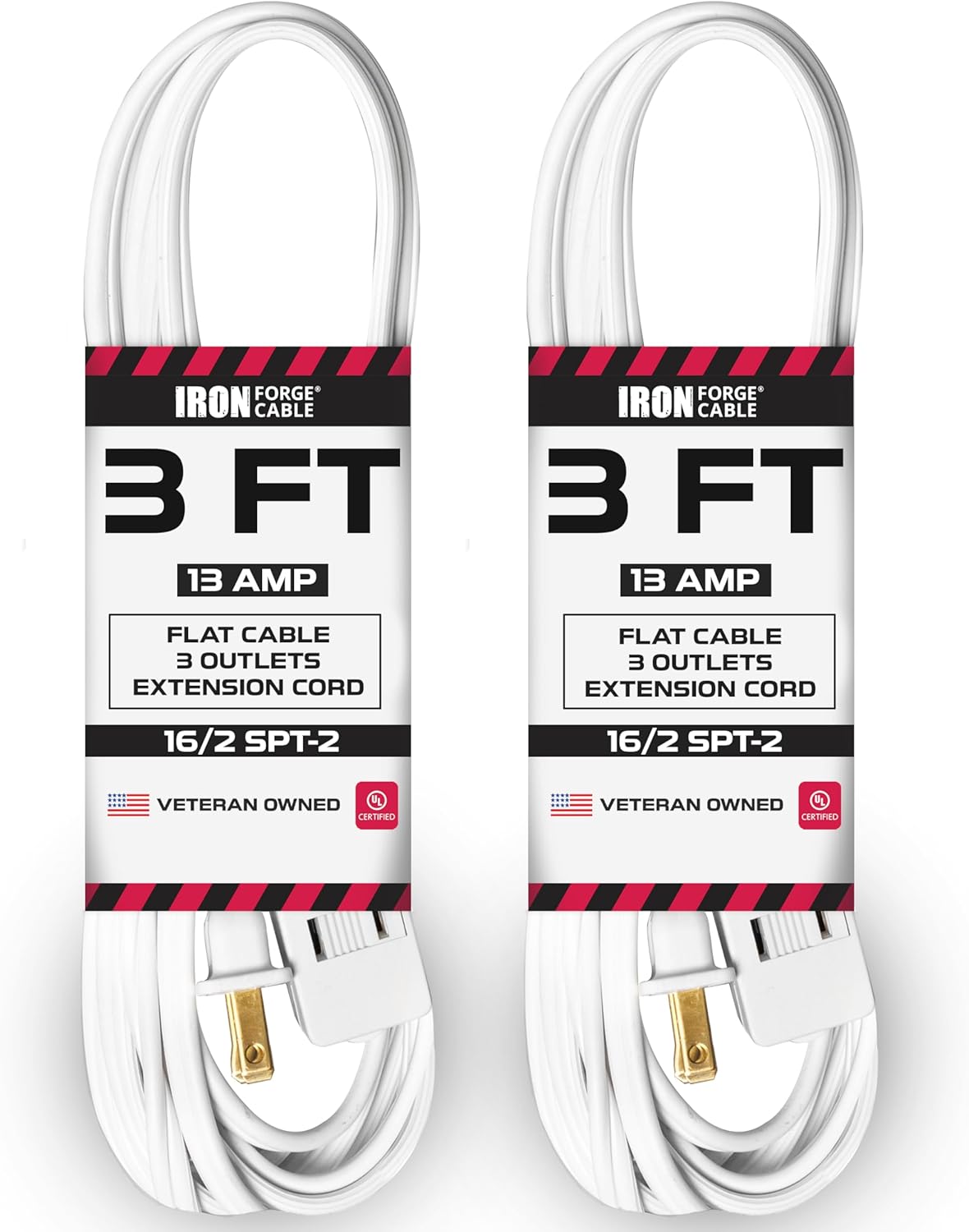 • FLAT CABLE INDOOR EXTENSION CORDS - Ideal for computers, monitors, printers, lamps, small household appliances, electronics, and more.