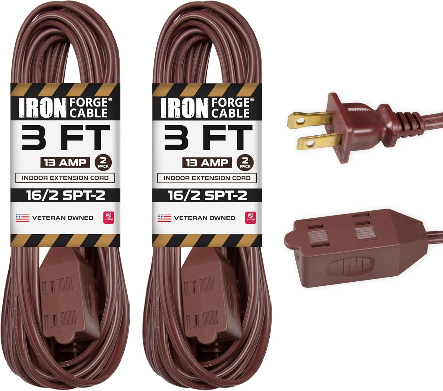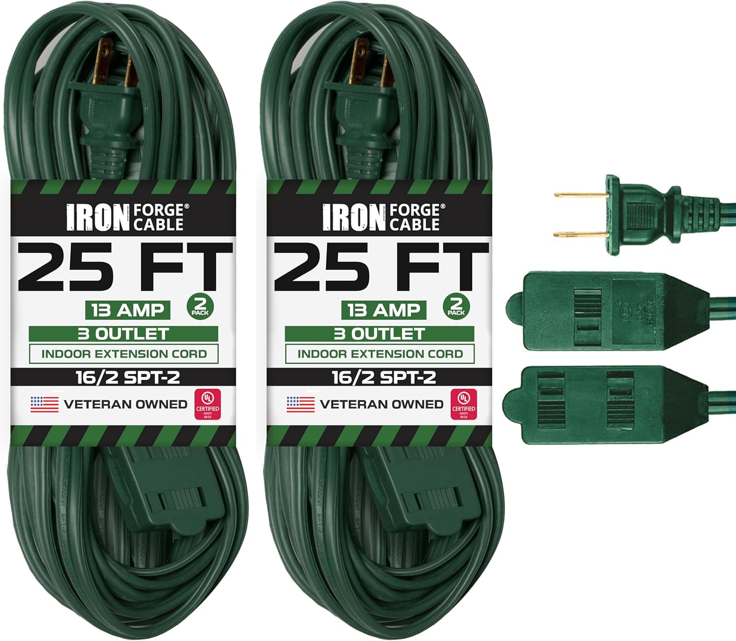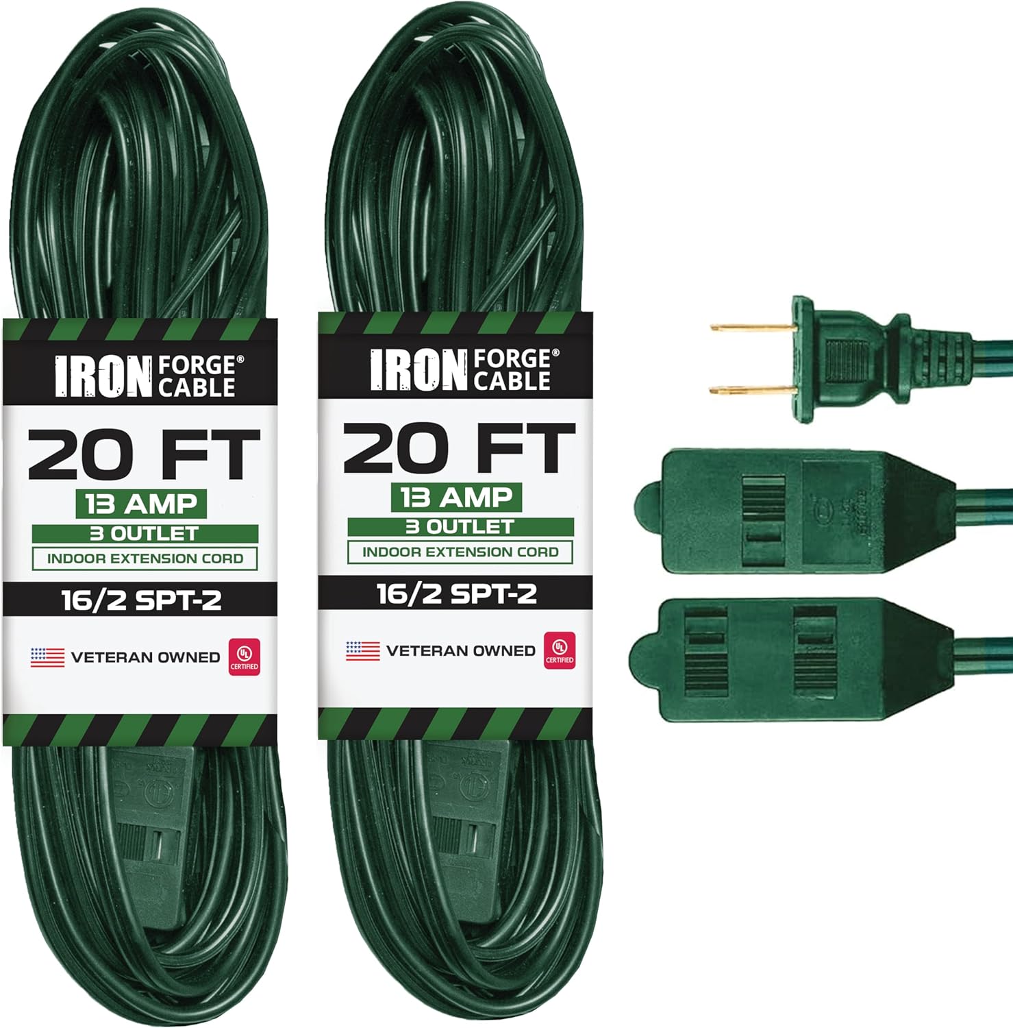 Iron Forge Cable 3 Outlet Green Extension Cord 2 Prong, 3 Pack of 6ft 10ft & 15ft, 16/2 Indoor Extension Cord with Multiple Outlets, 13 AMP 2 Prong for Home, Office, Outdoor Lights
