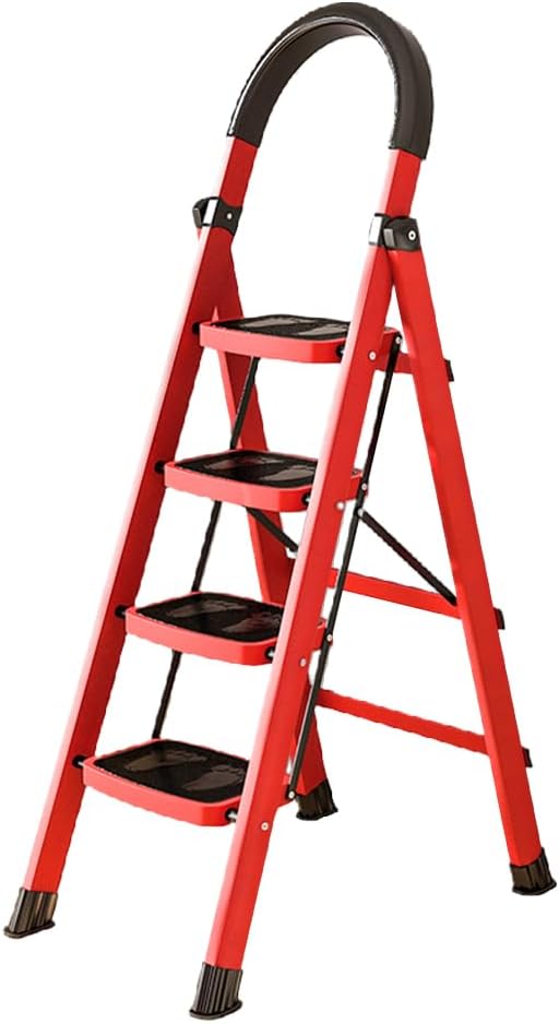 Material: Carbon Steel+rubber non-slip pedal mats Color: Red/Grey Number of Steps: 3 Steps/4 Steps/5 Steps/6 Steps/7 Steps Foldable: Yes Load Capacity: 150kg/330lbs Assembly Status: Fully Assembled Size About: 3 Step---Expand Size: 46 X 57 X 110cm/ 18.11 X 22.44 X 43.3 IN; Folded Size: 46 X 5 X 118cm/ 18.11 X 1.96 X 46.45 IN 4 Step---Expand Size: 49 X 75 X 135cm/ 19.29 X 29.52 X 53.14 IN; Folded Size: 49 X 5 X 143cm/ 19.29 X 1.96 X 56.29 IN 5 Step---Expand Size: 50 X 90 X 160cm/ 19.68 X 35.43 X 62.99 IN; Folded Size: 50 X 5 X 169cm/ 19.68 X 1.96 X 66.53 IN 6 Step---Expand Size: 52 X 100 X 177cm/ 20.47 X 39.37 X 69.68 IN; Folded Size: 52 X 5 X 188cm/ 20.47 X 1.96 X 74.01 IN Pedal Size: 30 X 20cm/ 11.81 X 7.87 IN; Pedal Spacing: 23cm/9.05 IN Package Included: 1x Step Ladder