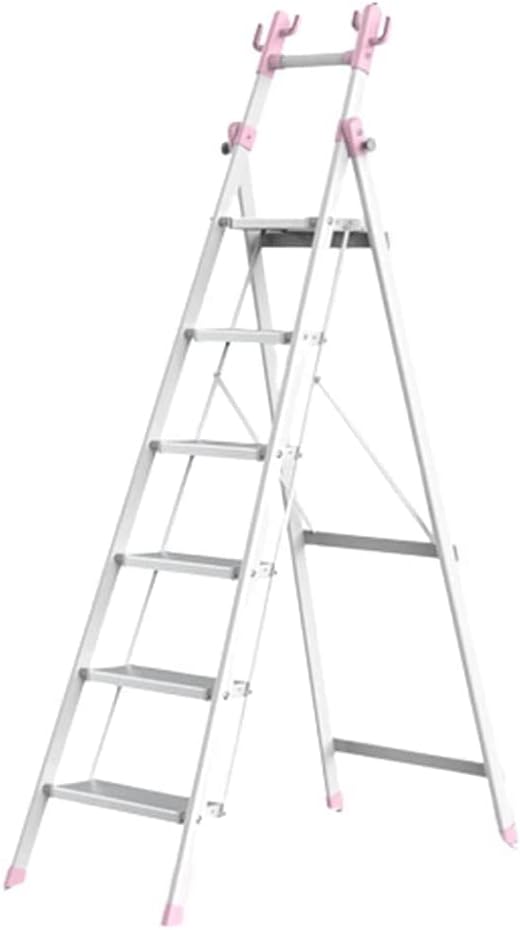 Special Feature: Telescopic, Foldable, Safety, Adjustable Height, Sturdy, DurableLadder Type:Telescoping Ladders/Folding Ladder/Step Ladders Material:AluminumColor:Pink,Light GreySize:3 Step Ladder,4 Step Ladder,5 Step Ladder,6 Step LadderLoad capacity:150KG/330LBObtain: Telescoping Ladders × 1 (excluding any products)Wide Range:for home, attic, RV, outdoor work, building maintenance, window cleaning, decoration workProduct features: 1. Our products are photographed and measured by hand, there may be a slight color difference and an error of about 1-3mm. Please refer to the actual product. Please understand that you can contact us by email at any time. 2. Please reconfirm the product you need before purchasing. 3. Does not include products other than this product shown in the product photo