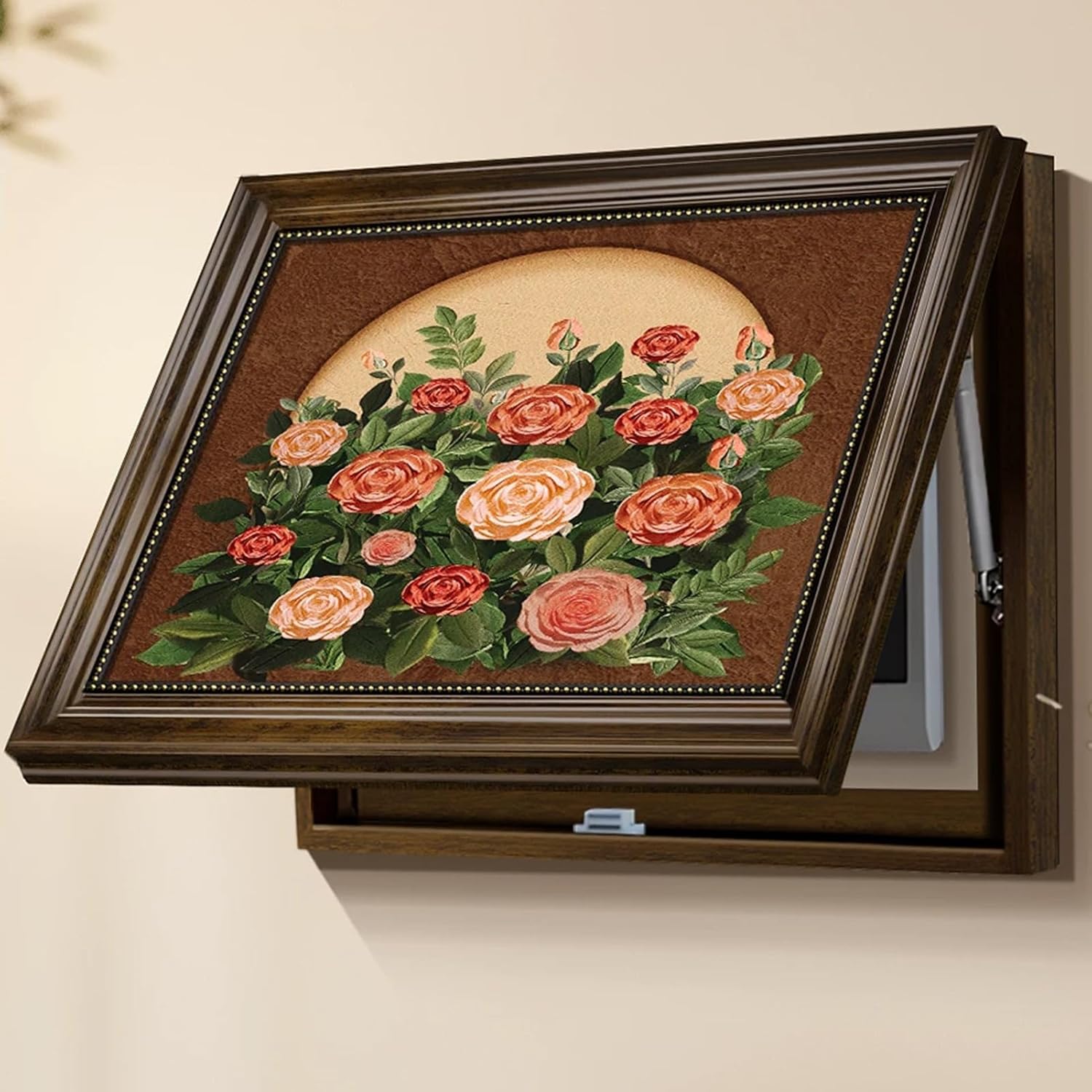 This wall-mounted floral oil painting breaker box cover with hydraulic rod features 180° hinge opening, premium materials for easy installation and cleaning, and conceals electrical panels as elegant art decor for all scenes.Product SpecificationsProduct Name: Decorative Meter Box CoverFrame Material: PS FrameFrame Color: NaturalOpening Mode: YHWKGZ Hydraulic OpeningSize: Width x Height40x50cm/15.7x19.6In Coverage Area 30x40cm/11.8x15.7In50x60cm/19.6x23.6In Coverage Area 40x50cm/15.7x19.6In50x70cm/19.6x27.5In Coverage Area 40x60cm/15.7x23.6In60x80cm/23.6x31.4In Coverage Area 50x70cm/19.6x27.5InPackage Contents1 × Decorative Meter Box CoverNotes:1. Slight size variances may occur due to manual measurement.2. Color tones might appear slightly different on your screen compared to the physical product.3. Other items on the product are for display only and are not included in the product.