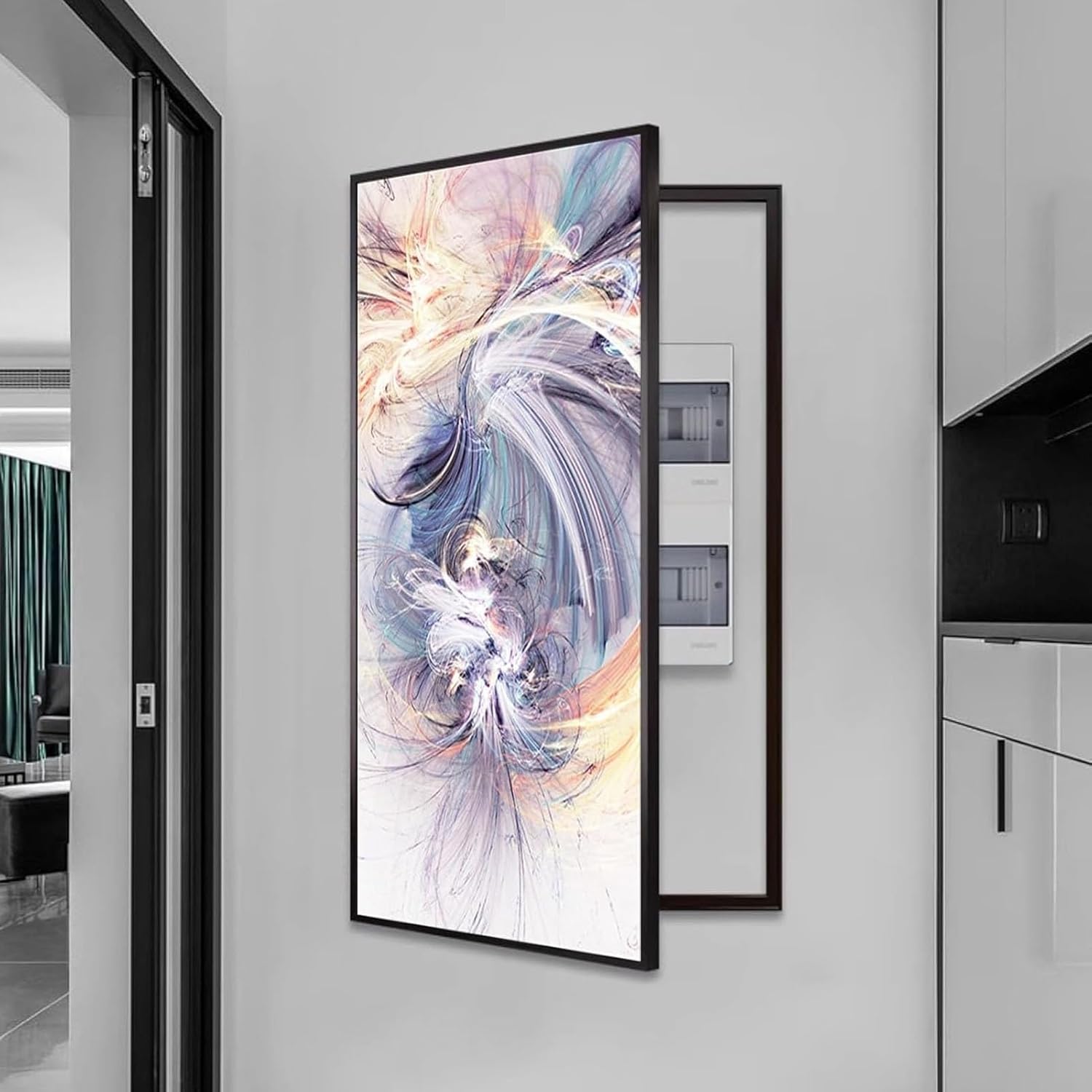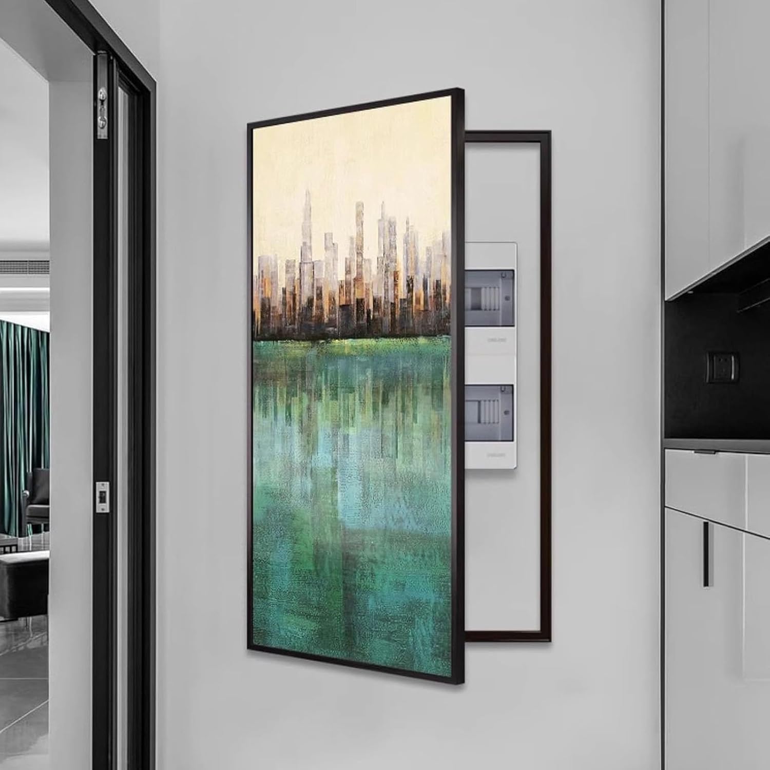 Transform your electrical panel into an eye-catching focal point with our Decorative Electrical Panel Cover. Designed with a modern and simple aesthetic, this cover not only enhances the visual appeal of your space but also offers a practical solution for concealing your electrical panelGive your home a cleaner, more stylish look with GUAWJRZDP Hide Fuse Box Cover Cabinet cover. it features a sturdy aluminum alloy frame and a crystal ceramic surface that protects your electrical panel while enhancing your interior décor✔ Product parameters:Product Name: Electric Meter Box Decorative Painting, Breaker Box Cover Decorative, electric meter box decorative painting hide distribution coverMaterial: Aluminum Alloy + Crystal PorcelainFrame Color: BlackColor: Color 1 , Color 2 , Color 3 , Color 4 , Color 5 , Color 6 , Color 7 , Color 8Dimensions: L40xH80cm/15.7x31.5'' , L60xH120cm/23.6x47.3''Mounting Type: Wall-MountOpening Method: Flip to the LeftPackage Contents: 1 x Circuit Breaker Box Cover, Mounting AccessoriesSuitable scenarios: Kitchen, living room, entryway, bedroom, dining roomKind tips: Please measure the dimensions of your distribution panel meter before purchasing. The dimensions must not exceed the area covered by the meter cover art (as shown in the size chart).✔ Note:1. There may be some differences between the picture and the product due to display and lighting, please refer to the actual product.2. Because it is processed by hand, the finished product usually has an error of 1-2 cm, please understand.