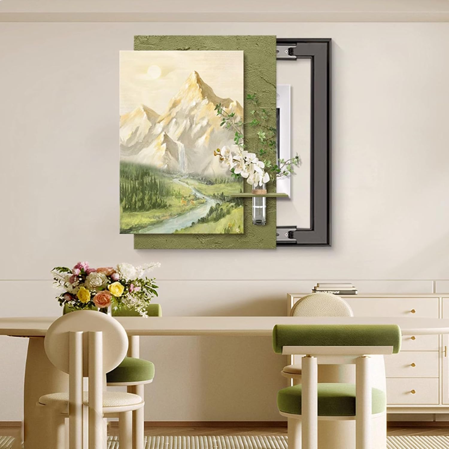 This electric meter box decorative painting blends into your wall for a clean, modern look.Available in various sizes to accommodate a wide range of meter box sizes, providing a seamless and precise fit.Perfect for living rooms, bedrooms, or offices, it adds modern charm.Product Name: Wall mounted electrical panel cover/Breaker Box Decorative Cover/Fuse Box Cover Cabinet/Flip - Up Meter Switch boxMaterial: MetalColor: Multiple styles availableDimensions: 40x50cm/15.7x19.7in , 45x55cm/17.7x21.7in , 45x65cm/17.7x25.6in , 55x65cm/21.7x25.6in , 55x75cm/21.7x29.5inMounting Type: Wall-MountSuitable scenarios: Kitchen, living room, entryway, bedroom, dining roomPackage Contents: 1 x Circuit Breaker Box Cover, Mounting AccessoriesNote:1. Only sell Fuse Box Cover Cabinet, other products are shooting props.2. There may be some differences between the picture and the product due to display and lighting, please refer to the actual product.3. Because it is processed by hand, the finished product usually has an error of 1-2 cm, please understand.