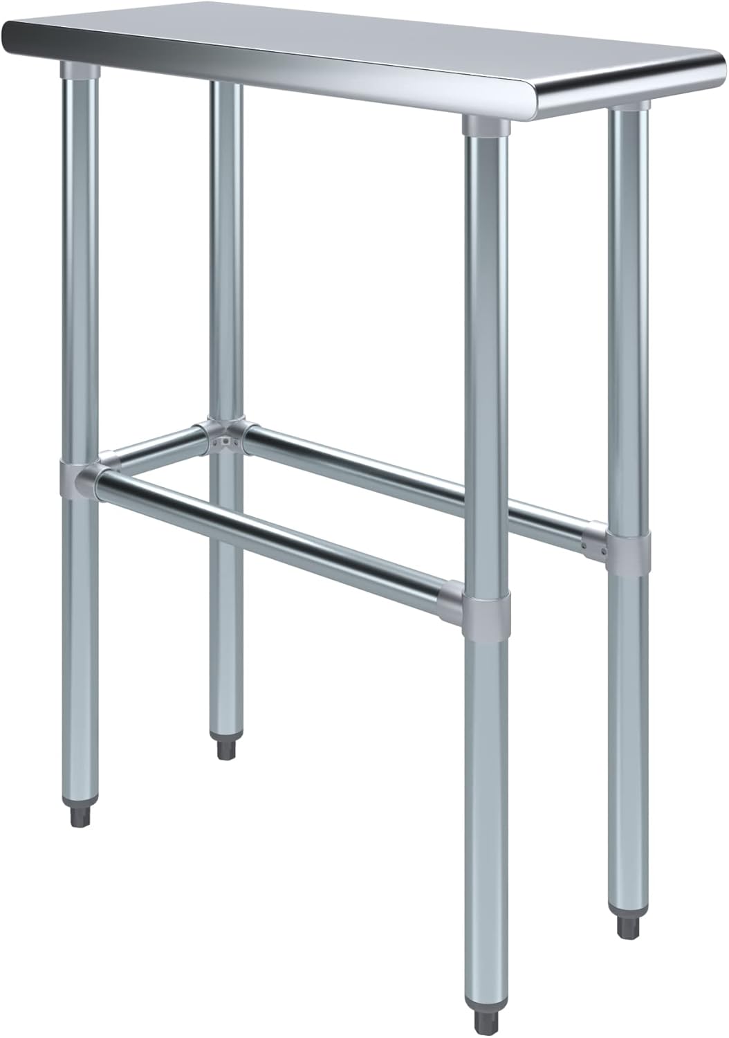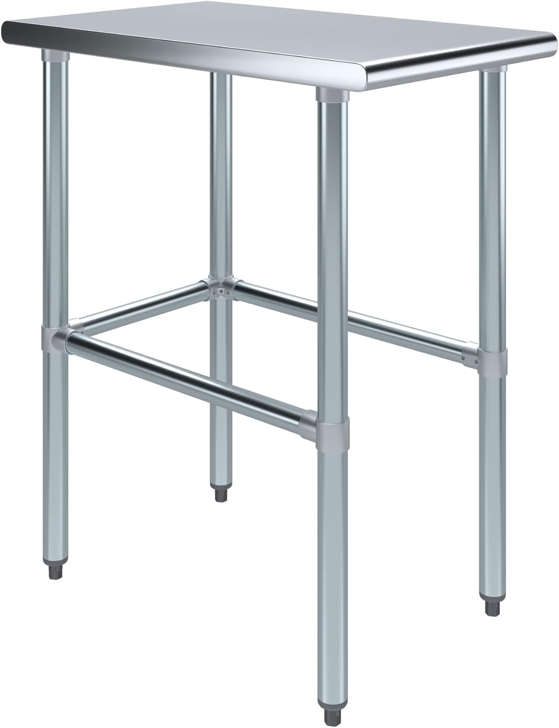 An open base stainless steel utility work table is a great addition to any home or business. It is perfect for a variety of tasks, including a workbench, prep table, or general-purpose table. Open base allows to store equipment and supplies with plenty of clearance. Some assembly is required.NSF certification allows the table to be used in any food service environment.The table is made with corrosion resistant 430 stainless steel top and galvanized legs and cross bars. It's built to withstand heavy use and everyday wear and tear. Whether you need a sturdy workspace for your next DIY project or simply want an extra prep area in the kitchen, this utility table has you covered.Common Applications:Food Prep Table For Commercial KitchenKitchen IslandCounter ExtensionUtility Bench for ShopProfessional Work StationGarage Work BenchLaundry Clothes Folding TableBrewing SetupExam Table For VeterinariansButcher ShopProduct SpecificationsStainless steel work table surface has curved edges for safety and comfort. It incorporates galvanized cross bars to add stability and leveling feet.18 Gauge 430 Stainless Steel TopAdjustable feet to compensate for uneven floorOpen base design - great for storageHeight: 35:NSF CertifiedSturdy & easy to setupHeavy Duty