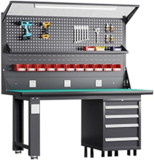 Workbench type: anti-static workbenchMaterial: cold-rolled steelColor: industrial grayProduct name: heavy-duty workbench/fitter tableProduct specifications:(length*width*height) 1200*750* 800mm1500* 750* 800mm(the thickness of the tabletop is 50mm)Introduction to the steel frame: sturdy and durable, bearing 1.5 tons,Electrostatic spraying process, smooth surface, anti-oxidation and easy to clean.Introduction to the wall cabinet: The workbench can be equipped with hanging drawers, flat drawers, and floor drawers for convenient storage of tools and parts.Introduction to the hanging board: The length is 1200/1500, the height of a single layer is 450mm, the height of a double layer is 900mm, and the thickness is 1.4mm cold-rolled steel.