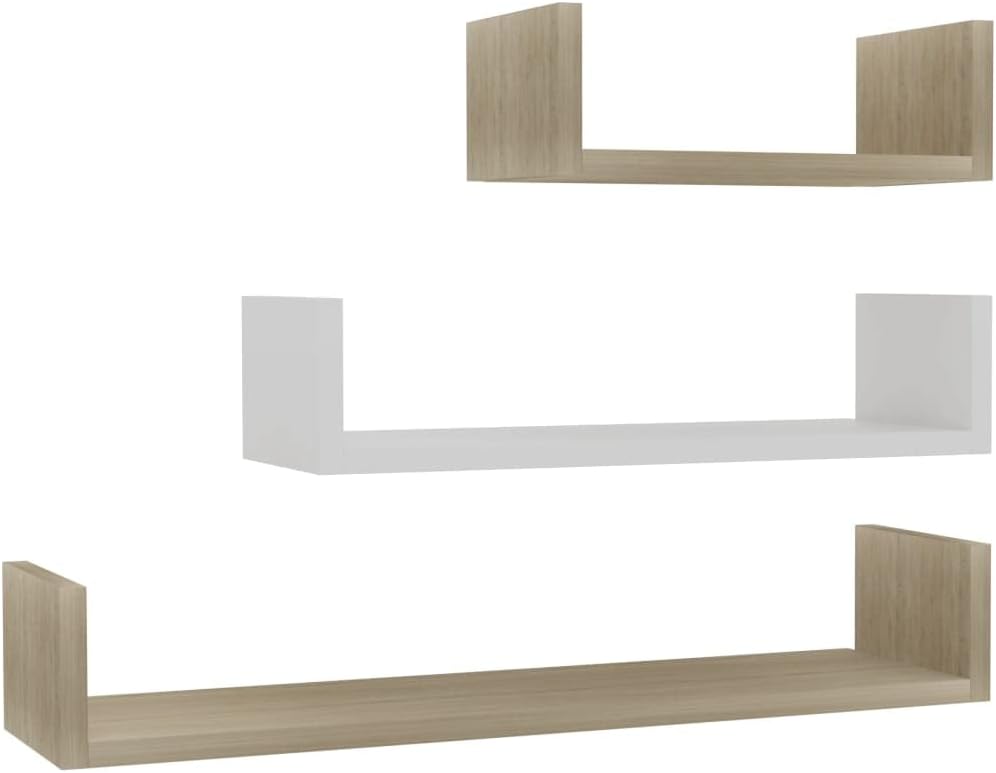 This set of 3 wooded shelves perfectly combines style and functionality. Simply yet elegant, this set is a great option to enlighten any wall in the room. Contemporarily-designed, this set of quality shelves is an ideal choice for your kitchen, living room, kitchen or bedroom wherever you need to place daily items.The shelves are made of engineered wood, which ensures it sturdiness, durability and long service life. The U shaped design offers perfect display or storage area for your books, CDs, flowers and other essentials.The shelves are easy to assemble. Delivery includes 3 shelves.Color: High gloss blackMaterial: Engineered woodLarge dimensions: 23.6" x 5.9" x 3.9" (L x W x H)Middle dimensions: 17.7" x 5.9" x 3.9" (L x W x H)Small dimensions: 11.8" x 5.9" x 3.9" (L x W x H)Delivery includes 3 shelves in different sizesGreat for home, office, dorm, etcPlease note: Screw(s) and plug(s) for inside the wall are not included. Seek and use screw(s) and plug(s) suitable for your walls. If you are uncertain, seek professional advice. Read and follow each step of the instruction carefully.