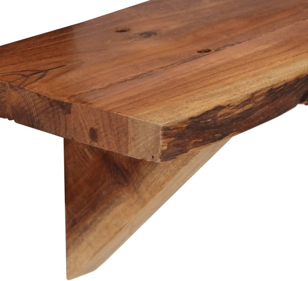 This wall-mounted shelf system adds a touch of elegance to your home while sorting out storage needs. Built from solid acacia wood, these rustic shelves highlight the unique beauty of natural wood grain, creating a warm, welcoming vibe in any living room, home office, or bathroom. At 35.4 in long, 7.9 in wide, and 7.1 in high, they provide loads of space for displaying books, decorative items, or personal treasures without cluttering your floors, making them a clever choice for any interior.Each shelf's unique wood grain makes every piece stand out, adding charm to your home.Built with solid acacia wood for durability, so they'll last and look good in any room.Wall-mounted design helps you save on floor space and gives you styling freedom.Versatile enough to showcase art, books, or your favorite possessions, while keeping your space tidy.Complete mounting kit included for easy installation, so you can quickly upgrade your room.Number Of Items: 2Color: BrownShape: OtherMaterial: Solid Acacia WoodFinish: PolishedIndoor/Outdoor: Indoor OnlyCover Included: NoRoom: Living RoomCapacity: Not specifiedMounting Included: Everything included to mountDimensions: 7.9 x 35.4 x 7.1 in (W x L x H)Surface Height: 0.8 inWeight: 18.17 lbsLadder: NoDelivery Contains: 2 wall shelves.Assembly Required: No