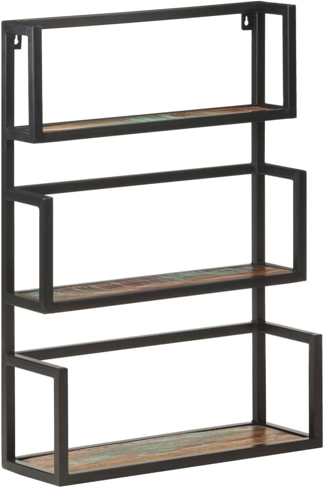 This wall shelf exudes an attractive charm and will be a truly center of attention in your interior.This shelf is made of solid reclaimed wood, which means that every piece of furniture is unique and slightly different from the next. Furniture made from reclaimed wood has the characteristics of different woods like teak, mango wood, and acacia wood. Reclaimed wood is solid, stable, durable, and beautiful. Signs of wear and visible grain structure give each piece its own history and a unique look. Besides, the powder-coated iron frame adds to its sturdiness. This wooden cabinet features 3 shelves, providing ample space for keeping your notepads, books, as well as various items neatly organized.Important note: The wood grains vary from piece to piece, making each piece unique. The delivery is random, ensuring the exclusivity and individuality of your product.