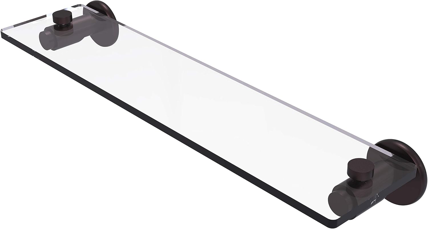 Add space and organization to your bathroom with this simple, contemporary style glass shelf. Featuring tempered, beveled-edged glass and solid brass hardware this shelf is crafted for durability, strength and style. One of the many coordinating accessories in the Allied Brass Tribecca Collection, this subtle glass shelf is the perfect complement to your bathroom decor.