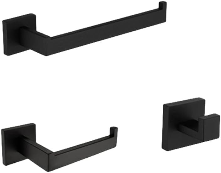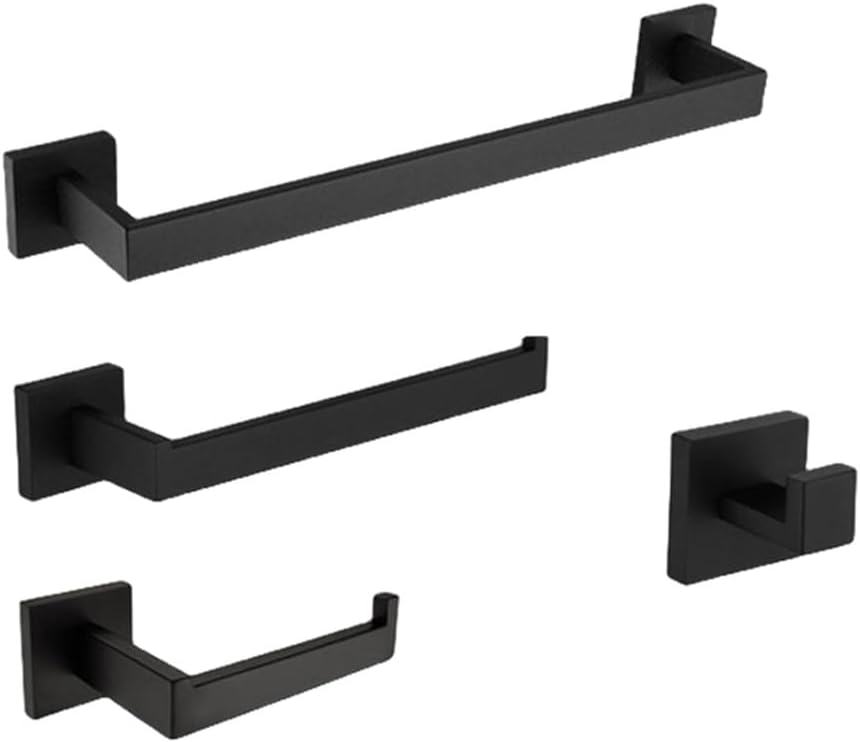 Bath Hardware Set Finishing:Stainless SteelSurface Finishing:Mirror PlatedMain Material:MetalCertification:CEType:Bath Hardware SetsColor:BlackChoice 1:Towel rackChoice 2:Toilet paper holderChoice 3:Liquid soap holderChoice 4:Toilet brushHigh Quality- The bathroom hardware kit is made of high-quality 304 stainless steel, which has the function of anti-corrosion, oxidation and rust. It has reliable strength and long-lasting atmospheric appearance.Matte Process- The surface of the bathroom hardware set is frosted, smooth and delicate, even after touching it, it is not easy to leave fingerprints and is easy to clean.Modern Design- The matte bathroom hardware set has a modern, simple and stylish appearance, and enhances visual appeal, adding a sense of modern simplicity to the overall design, making it a classic choice for any bathroom.Easy to Install- The towel rack fixing screws and holders included in the set are of good quality, and the hidden screws make it look cleaner and more beautiful. The installation process is very simple and easy, you can install it according to the instructions.Wide Applications- The modern design style towel rack can be used in bathrooms, hotels, terraces, outdoor showers, etc. Stylish matte black design, easy to match different styles. Even after long-term use, it can still maintain its elegant.
