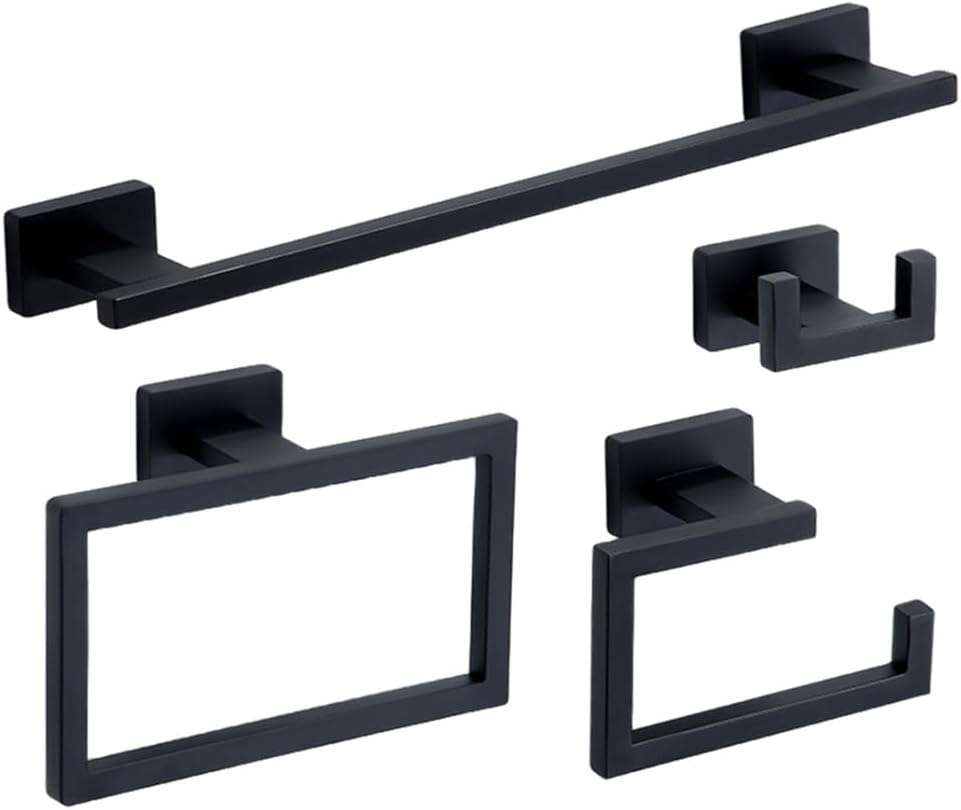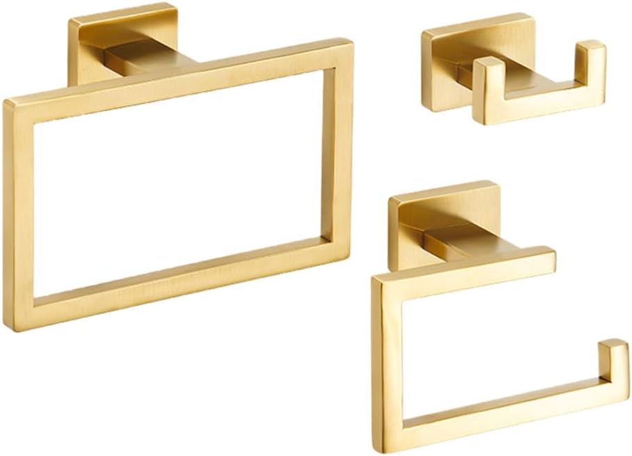 Model Number:Bathroom Towel Bar SetSurface Finishing:BrushedMain Material:304 Stainless steelMaterial:Stainless steelType:Bath Hardware SetsSets includes:Towel Bar,Towel Ring,Paper Holder,Robe HookColors:Gold, Black, SliverInstallation Type:Hole Punching InstallationSuitable for place:Bathroom, Kitchen, etcKey Words 1:Bathroom Accessories SetKey Words 2:Wall Mount Towel BarKey Words 3:Towel RackKey Words 4:Roll Paper HolderKey Words 5:Square Towel RingKey Words 6:Modern Bathroom Hardware SetHigh Quality- The bathroom hardware kit is made of high-quality 304 stainless steel, which has the function of anti-corrosion, oxidation and rust. It has reliable strength and long-lasting atmospheric appearance.Matte Process- The surface of the bathroom hardware set is frosted, smooth and delicate, even after touching it, it is not easy to leave fingerprints and is easy to clean.Modern Design- The matte bathroom hardware set has a modern, simple and stylish appearance, and enhances visual appeal, adding a sense of modern simplicity to the overall design, making it a classic choice for any bathroom.Easy to Install- The towel rack fixing screws and holders included in the set are of good quality, and the hidden screws make it look cleaner and more beautiful. The installation process is very simple and easy, you can install it according to the instructions.Wide Applications- The modern design style towel rack can be used in bathrooms, hotels, terraces, outdoor showers, etc. Stylish matte black design, easy to match different styles. Even after long-term use, it can still maintain its elegant.