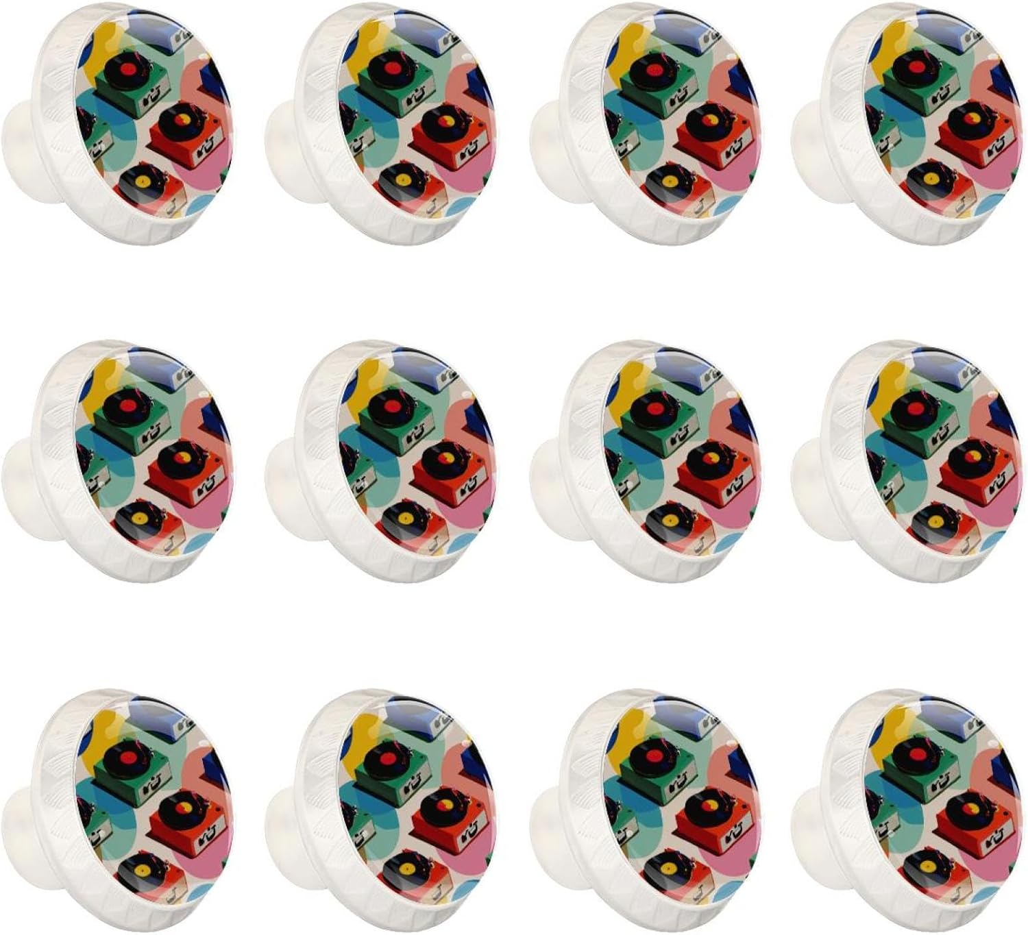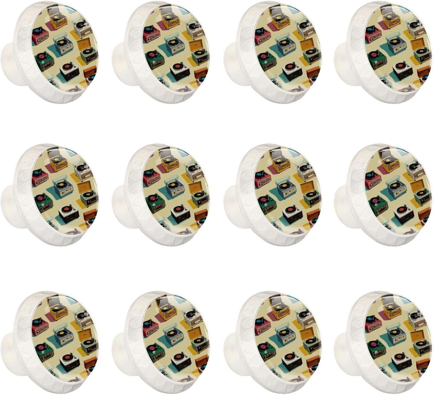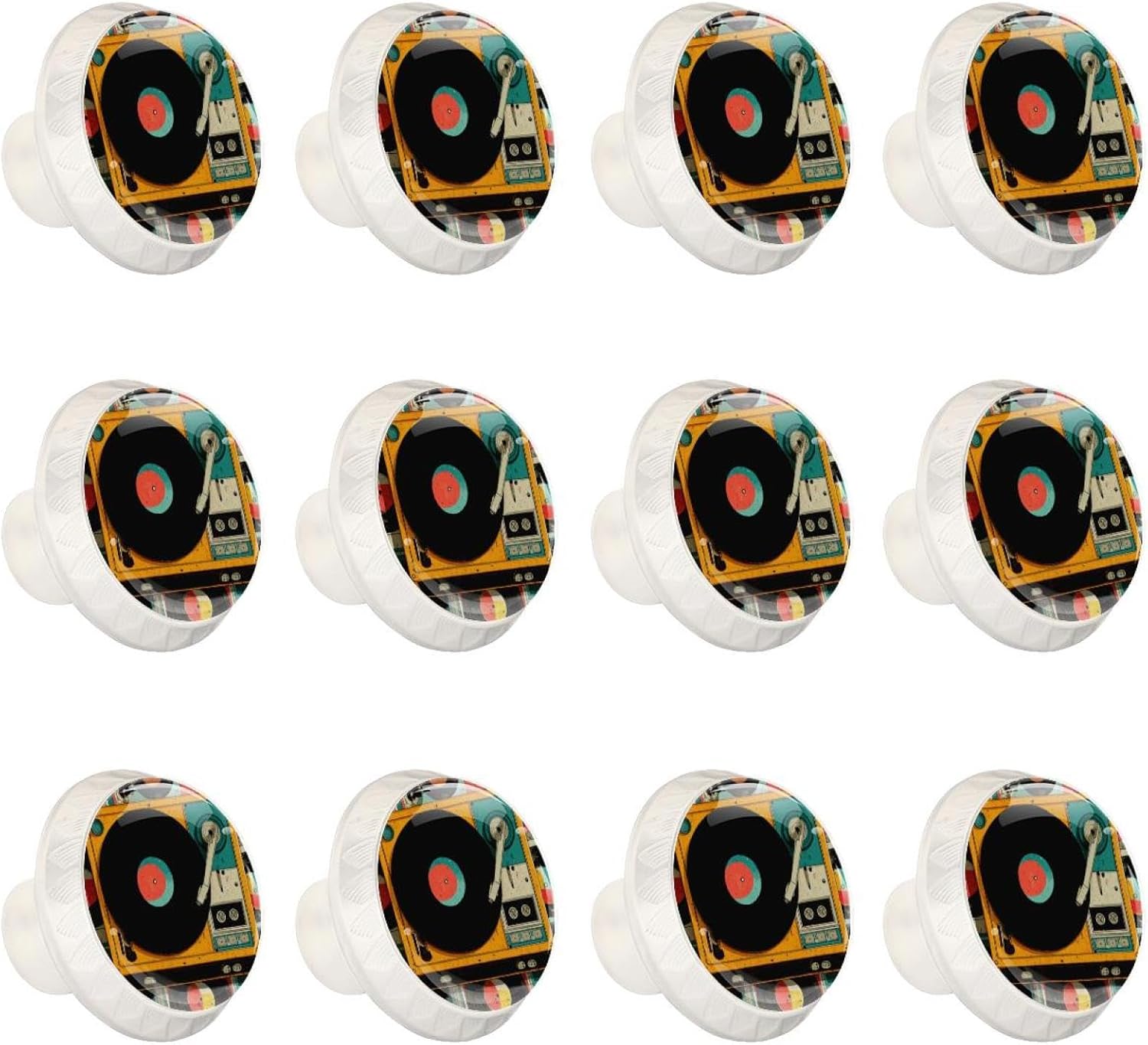 Black Color Record Player Pattern (50) Mushroom Cabinet Knobs, Decorative Drawer Pulls with Screws Included for Farmhouse & Modern Home Decor