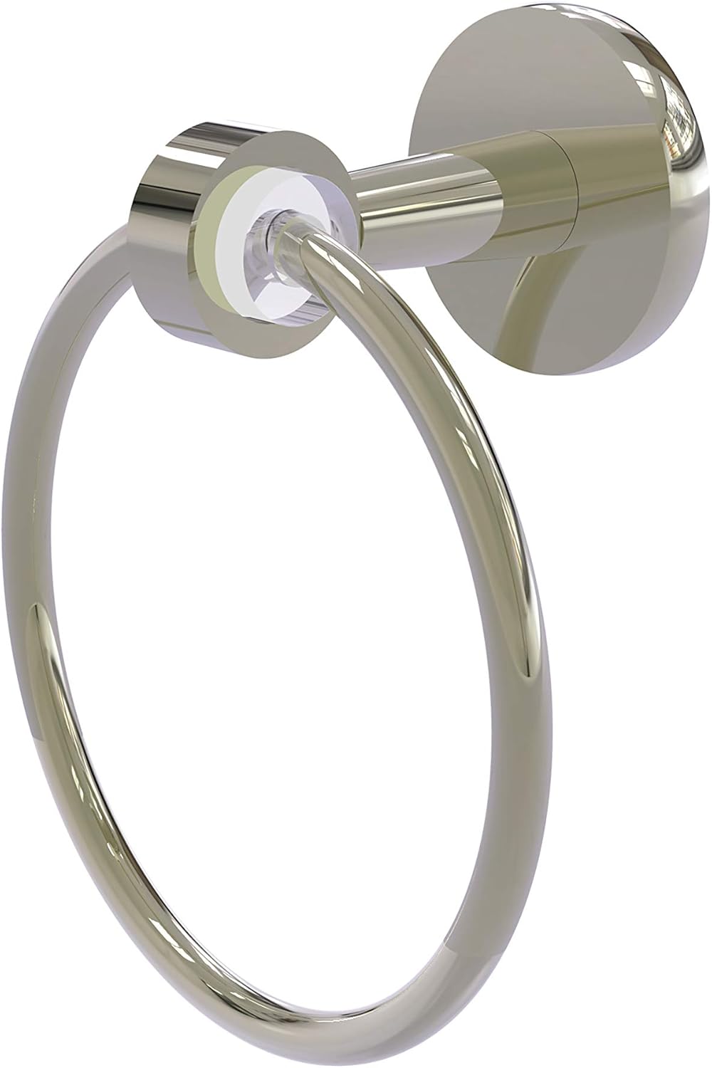 Towel rings are the perfect accessory for guest bathrooms or powder rooms. This elegant design echoes the circular design everywhere: the holder itself, arm, and matching hardware. Finely crafted of solid brass with accents of clear acrylic and a lifetime designer finish is the perfect blend of style and performance.